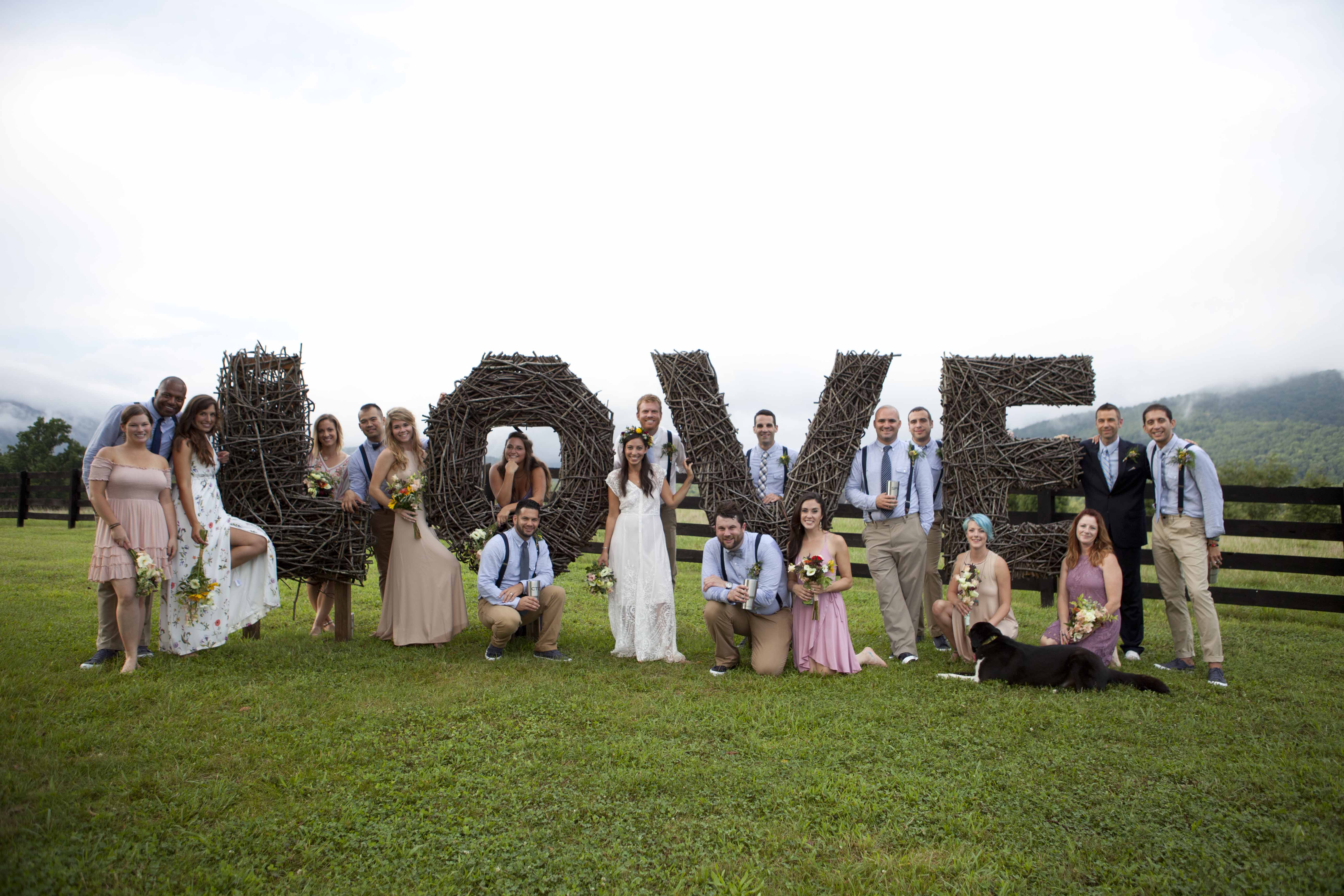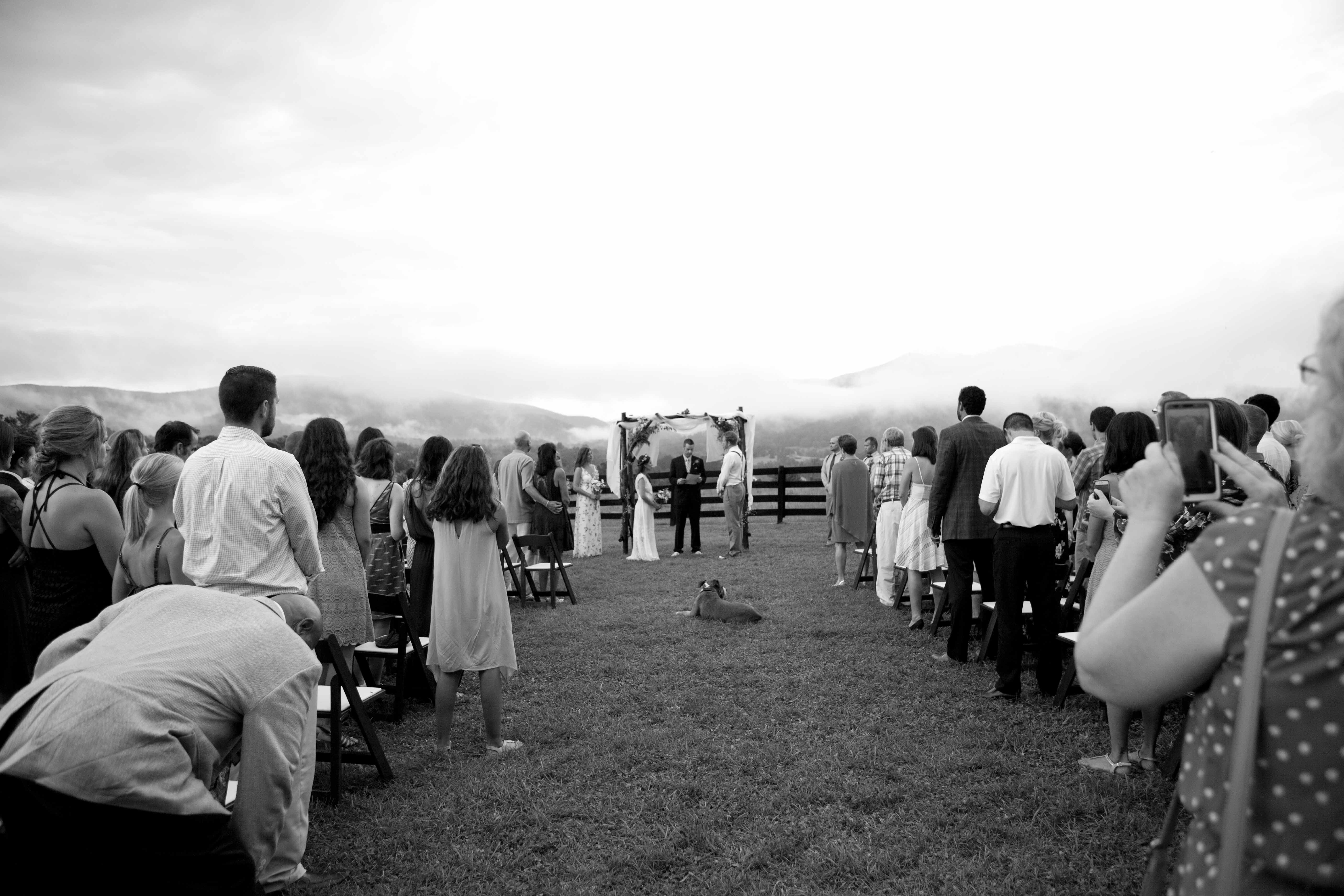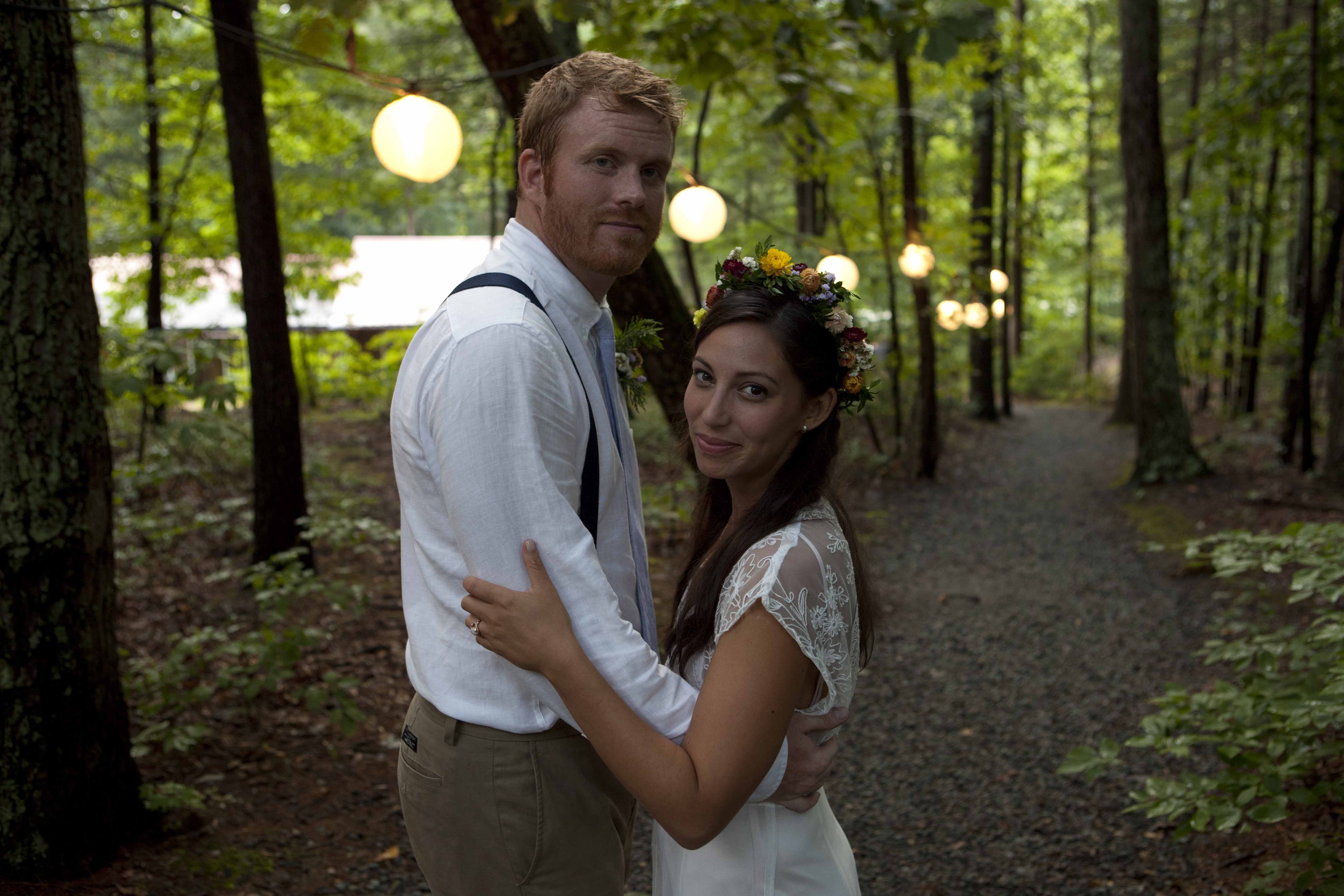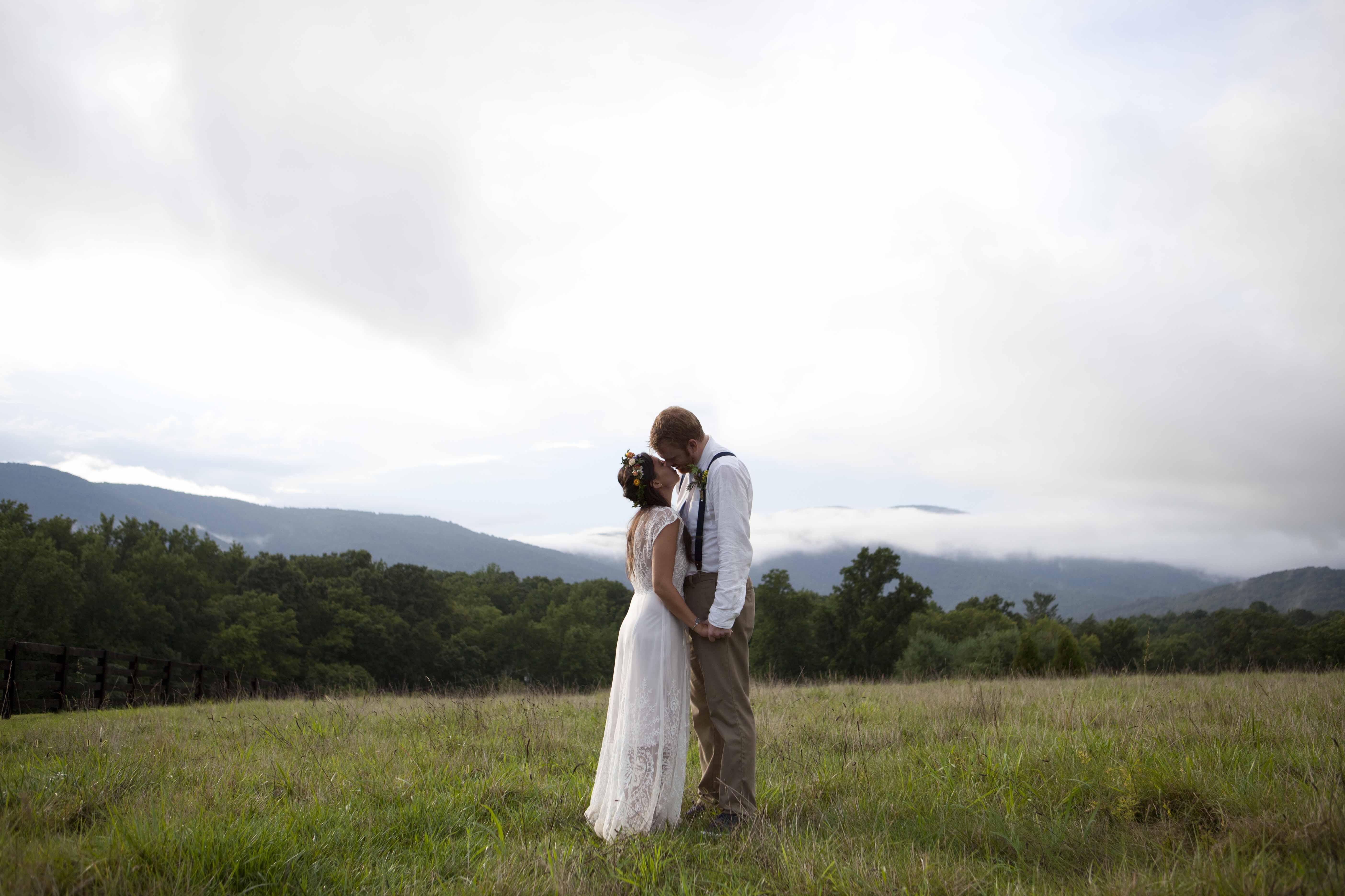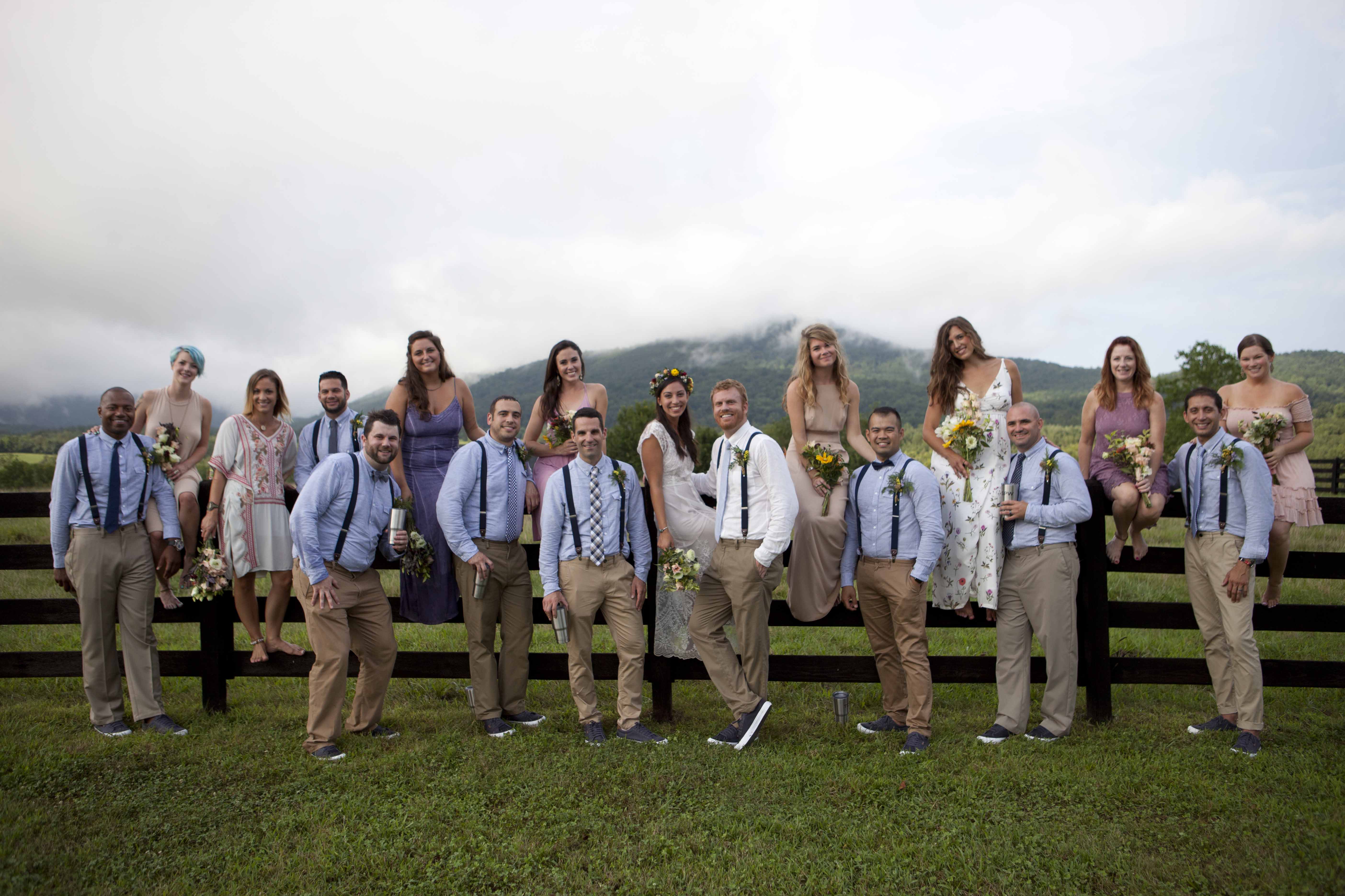 Jason and Allie invited their friends and family to celebrate their wedding day in a nature-lovers heaven. This lush oasis, Montfair Resort Farm, is tucked away in the mountains of Crozet, Virginia, just outside of Charlottesville. There was a calming peace over the whole event that not even a one hour rain delay could rattle. Guests joined together to witness Allie and Jason make sincere, tearful vows to each other while fog hugged the mountainous layers of blue behind them. Following a paper lantern-lit pathway through the woods led guests to cocktail hour where canoes were available for cruising and drinks were served in mason jars designed by Allie’s cousin. The reception was filled to the brim with personal touches of love. As I walked away that evening, sounds of dancing, laughter, music, and celebration under the canopy of trees faded into the distance behind me.
