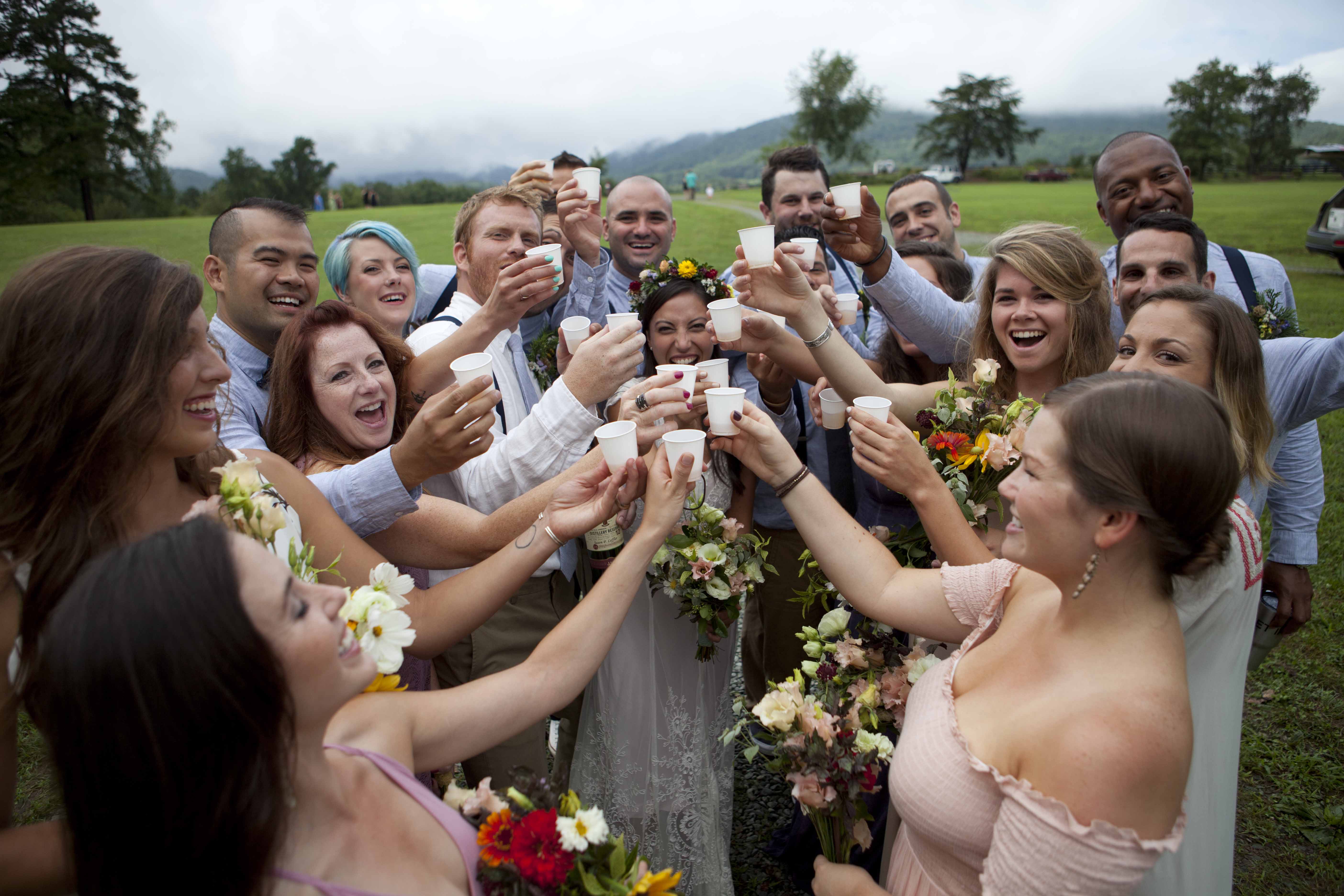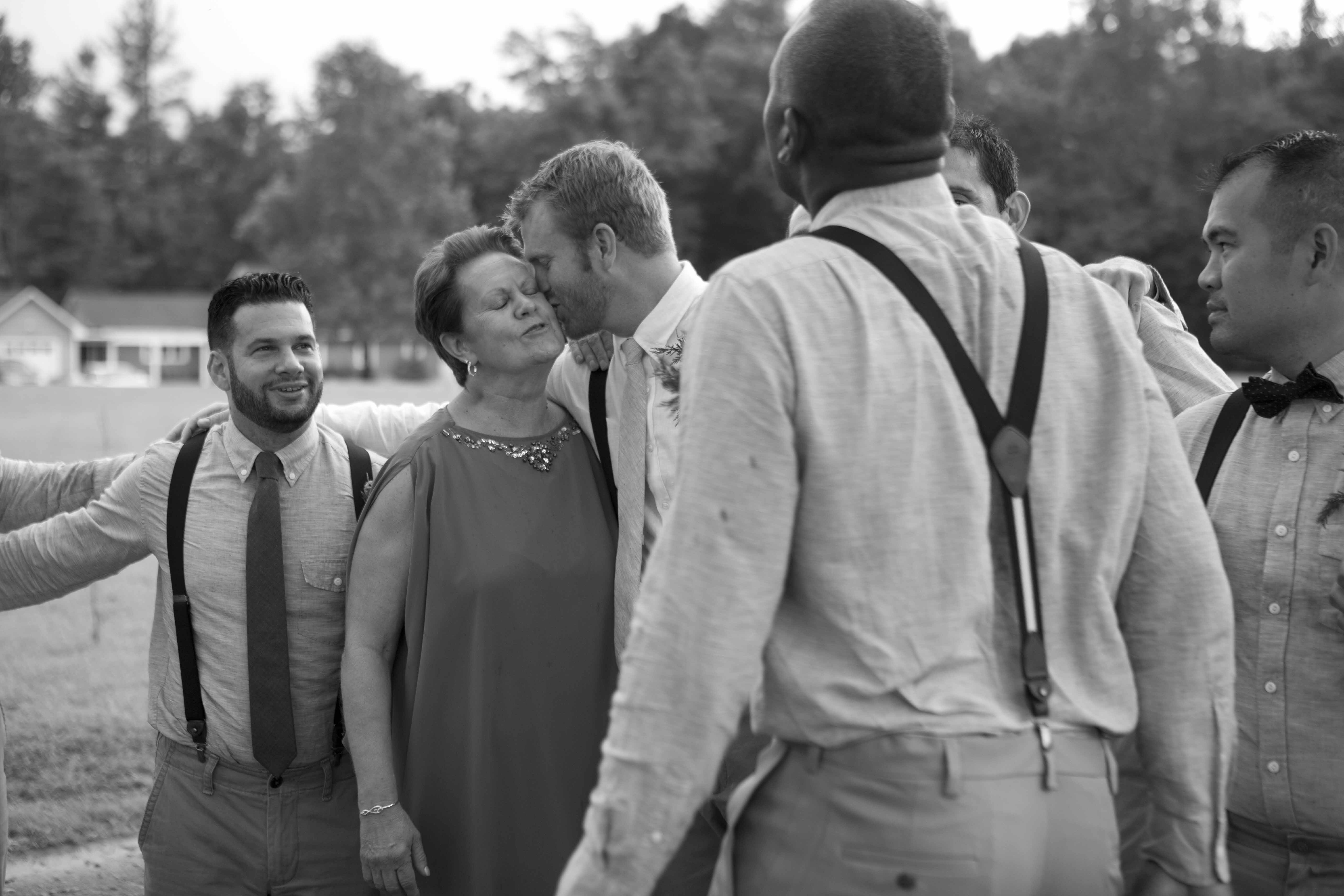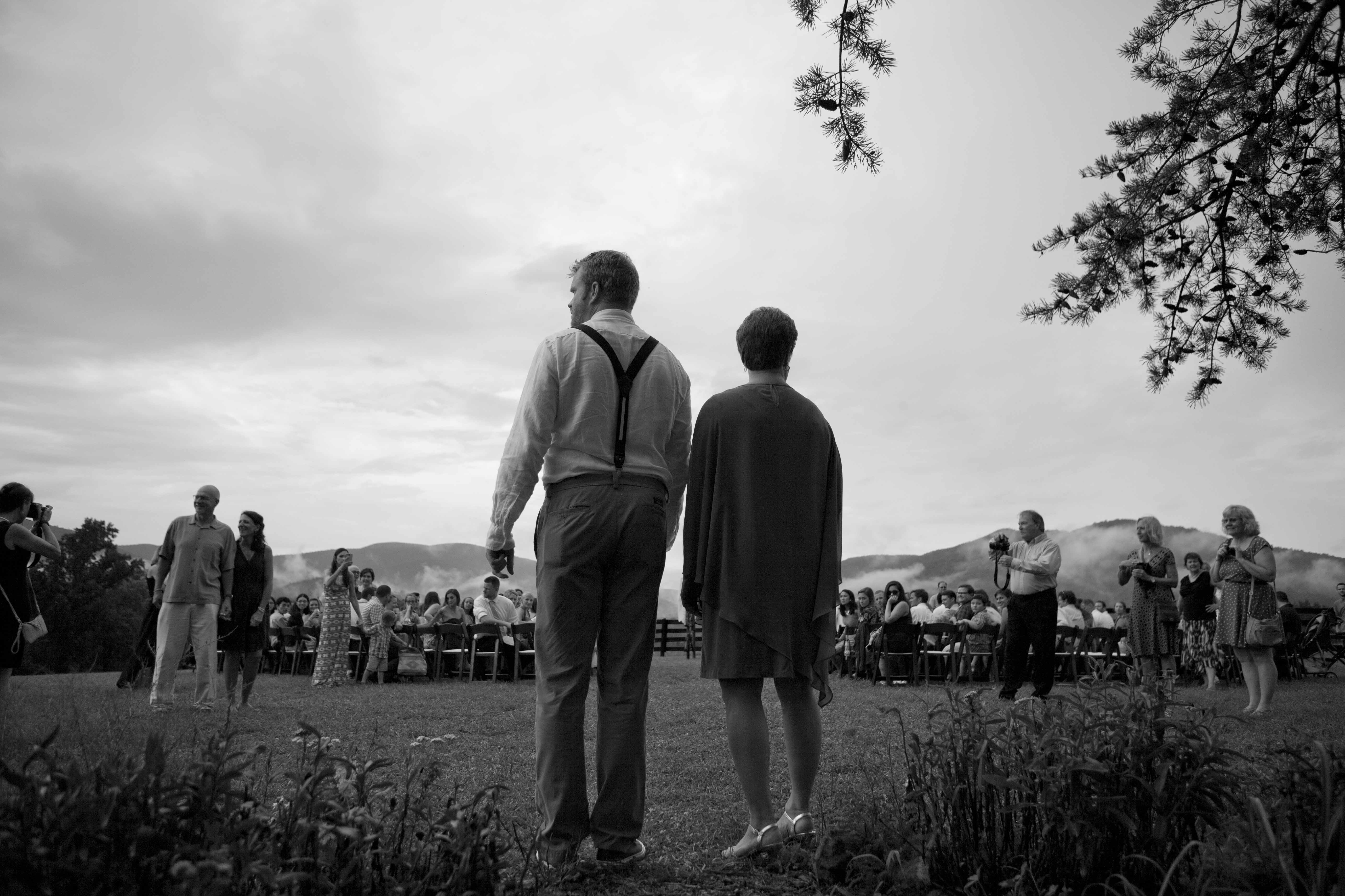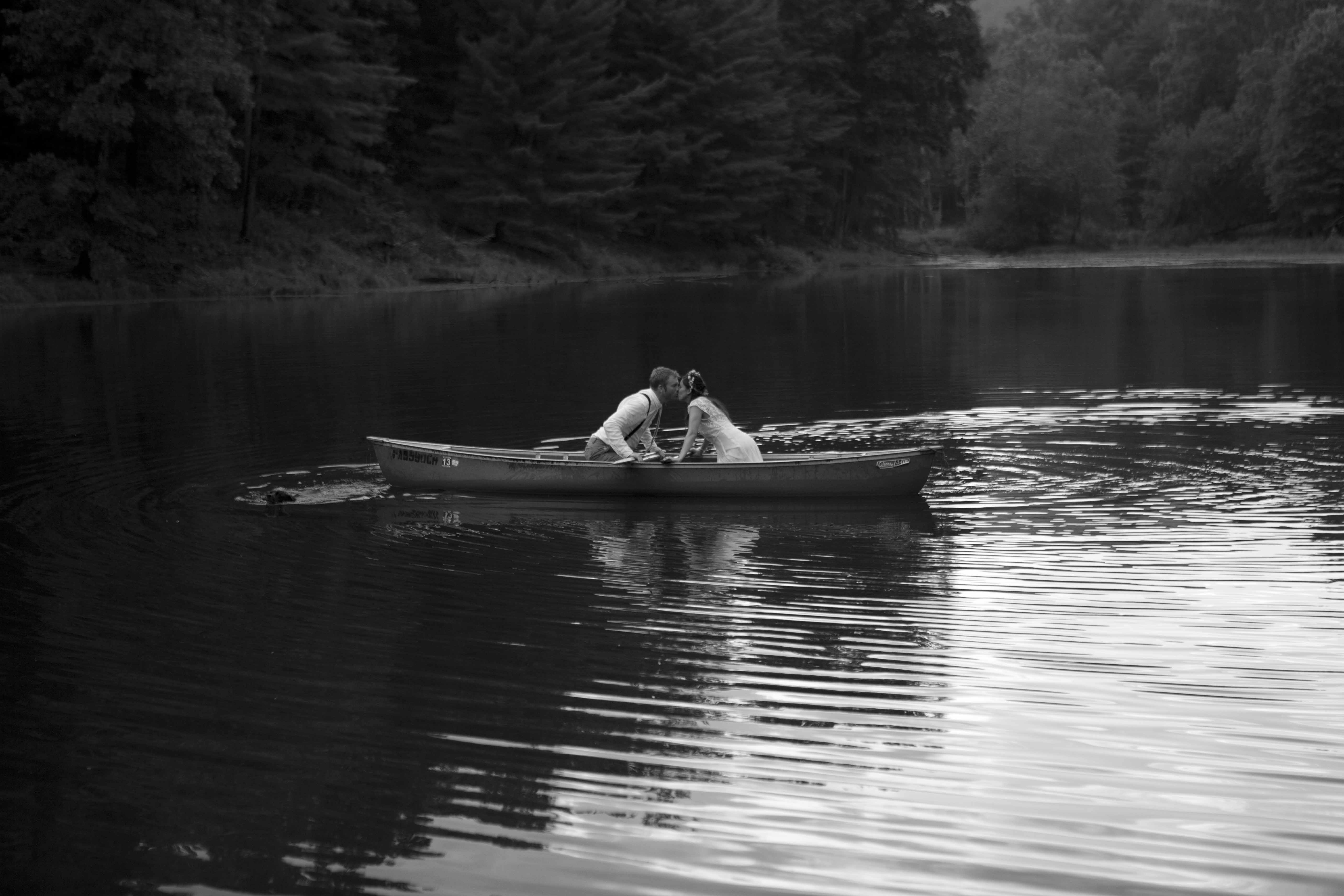 Jason and Allie invited their friends and family to celebrate their wedding day in a nature-lovers heaven. This lush oasis, Montfair Resort Farm, is tucked away in the mountains of Crozet, Virginia, just outside of Charlottesville. There was a calming peace over the whole event that not even a one hour rain delay could rattle. Guests joined together to witness Allie and Jason make sincere, tearful vows to each other while fog hugged the mountainous layers of blue behind them. Following a paper lantern-lit pathway through the woods led guests to cocktail hour where canoes were available for cruising and drinks were served in mason jars designed by Allie’s cousin. The reception was filled to the brim with personal touches of love. As I walked away that evening, sounds of dancing, laughter, music, and celebration under the canopy of trees faded into the distance behind me.