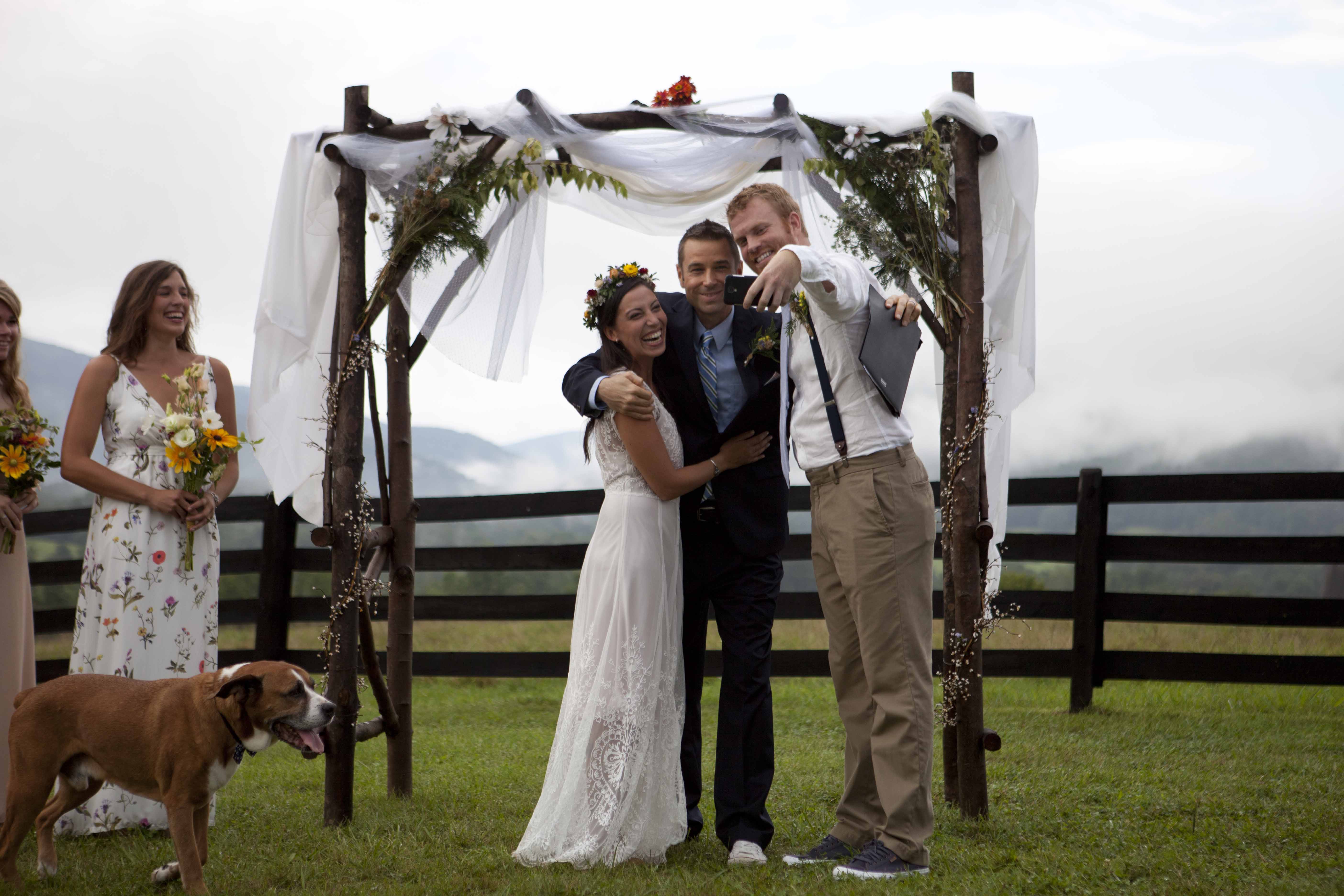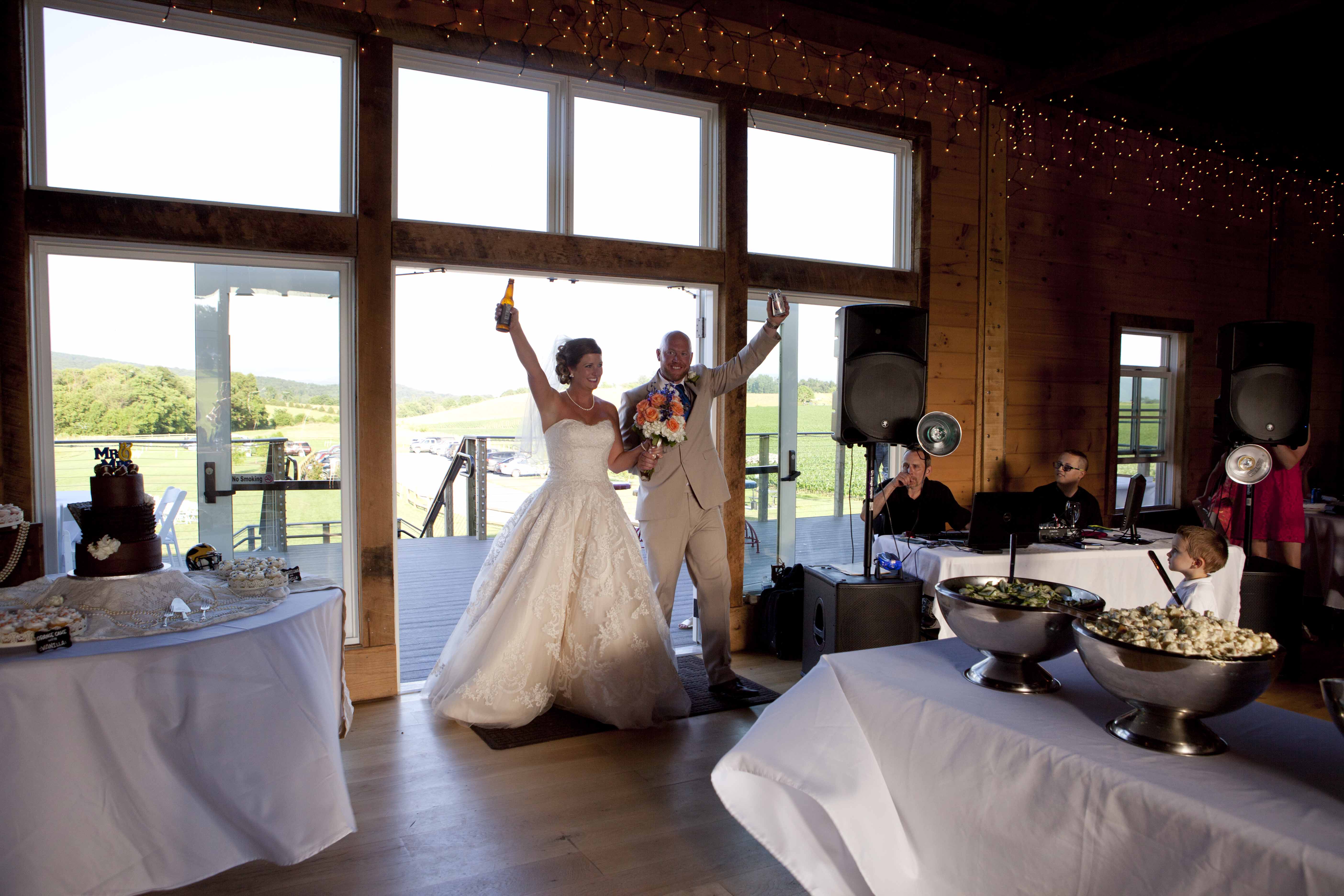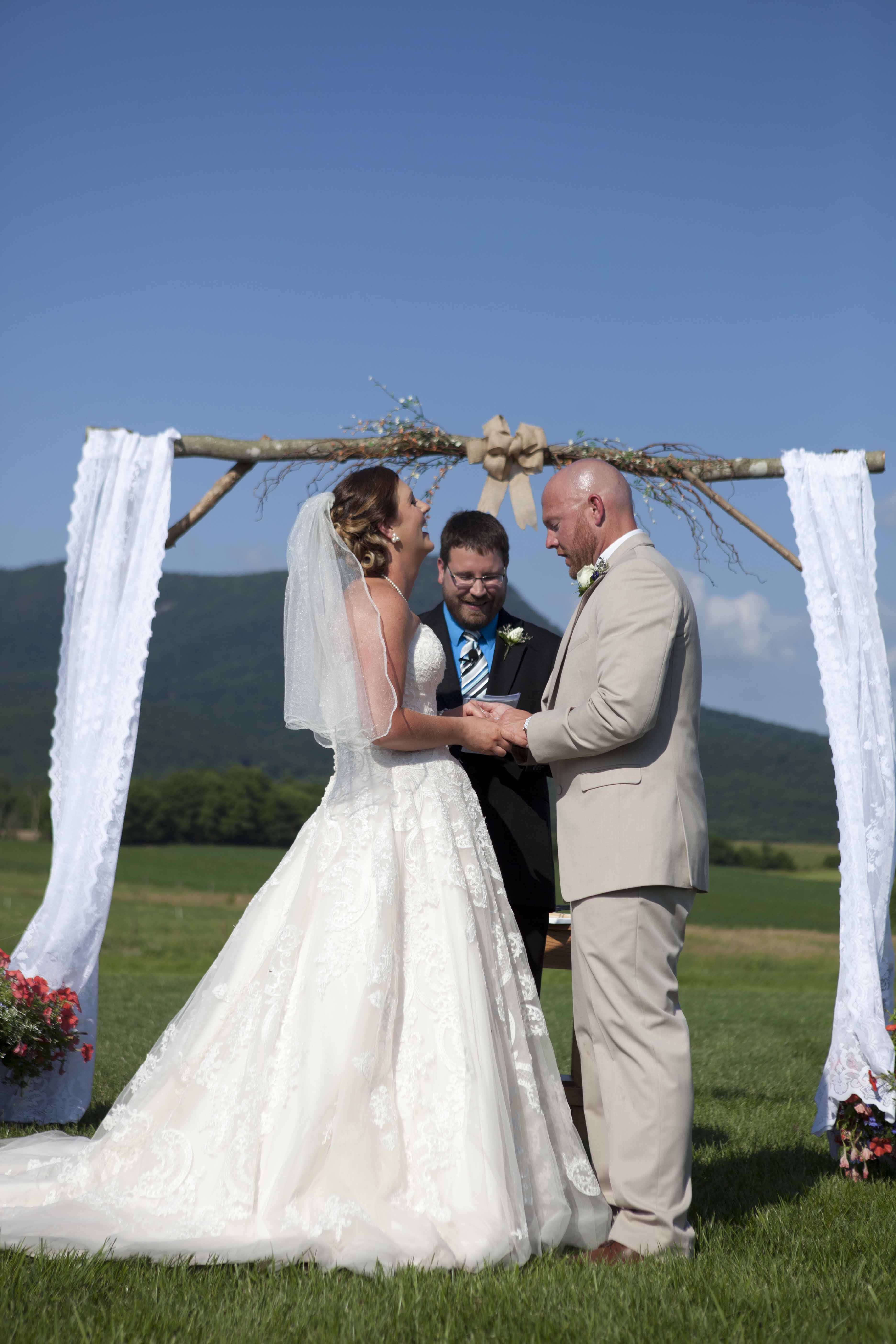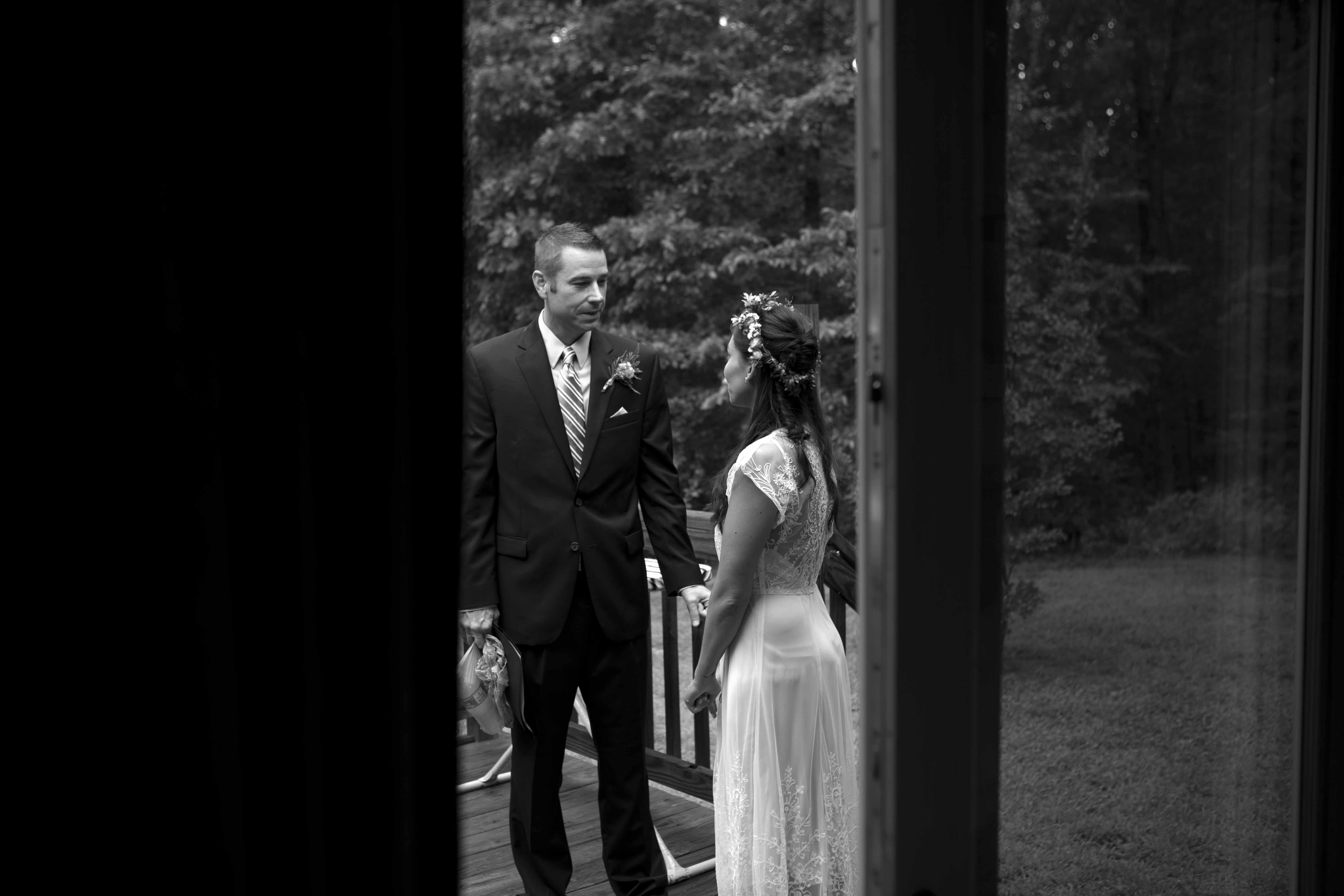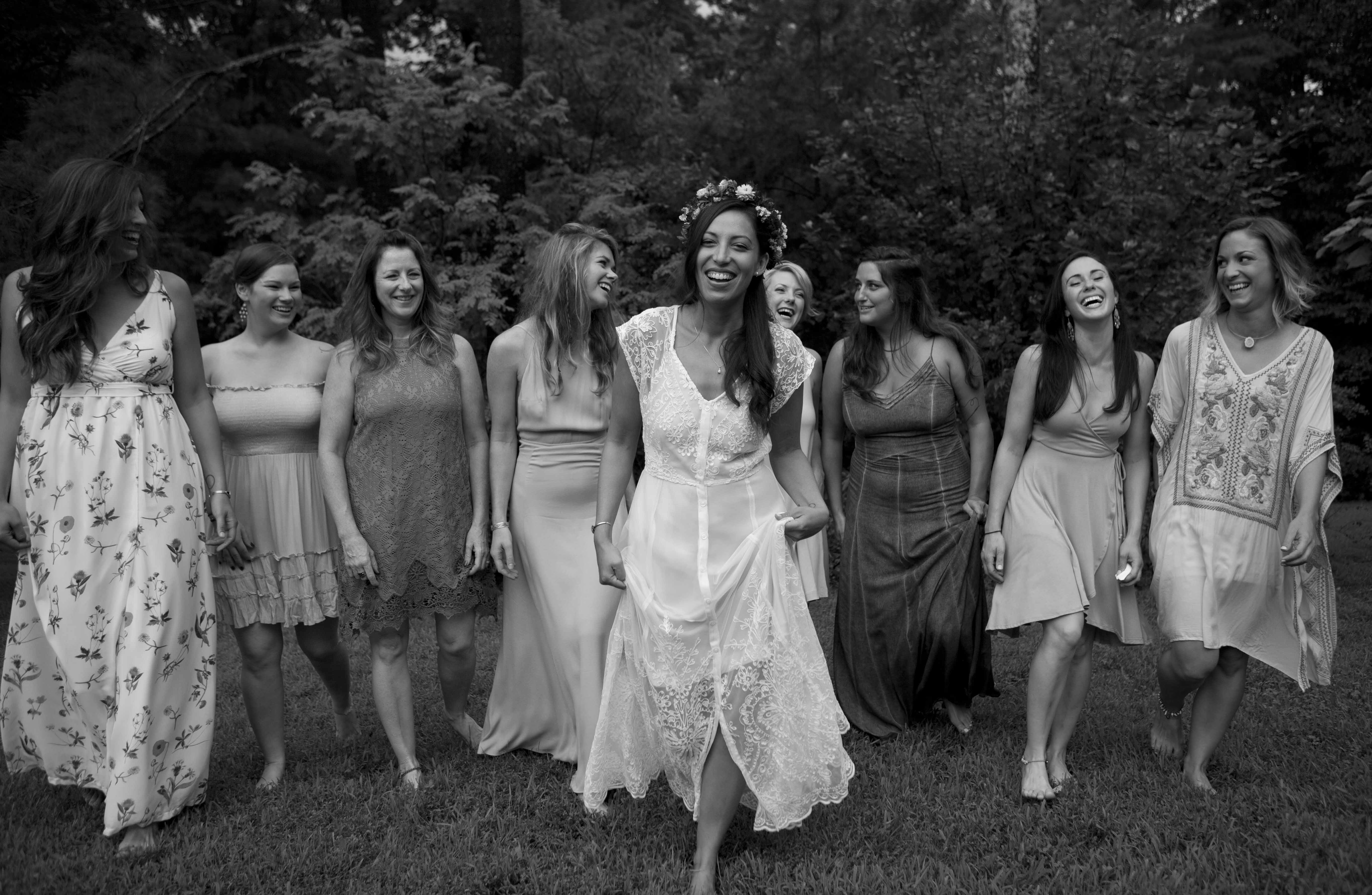 Jason and Allie invited their friends and family to celebrate their wedding day in a nature-lovers heaven. This lush oasis, Montfair Resort Farm, is tucked away in the mountains of Crozet, Virginia, just outside of Charlottesville. There was a calming peace over the whole event that not even a one hour rain delay could rattle. Guests joined together to witness Allie and Jason make sincere, tearful vows to each other while fog hugged the mountainous layers of blue behind them. Following a paper lantern-lit pathway through the woods led guests to cocktail hour where canoes were available for cruising and drinks were served in mason jars designed by Allie’s cousin. The reception was filled to the brim with personal touches of love. As I walked away that evening, sounds of dancing, laughter, music, and celebration under the canopy of trees faded into the distance behind me.