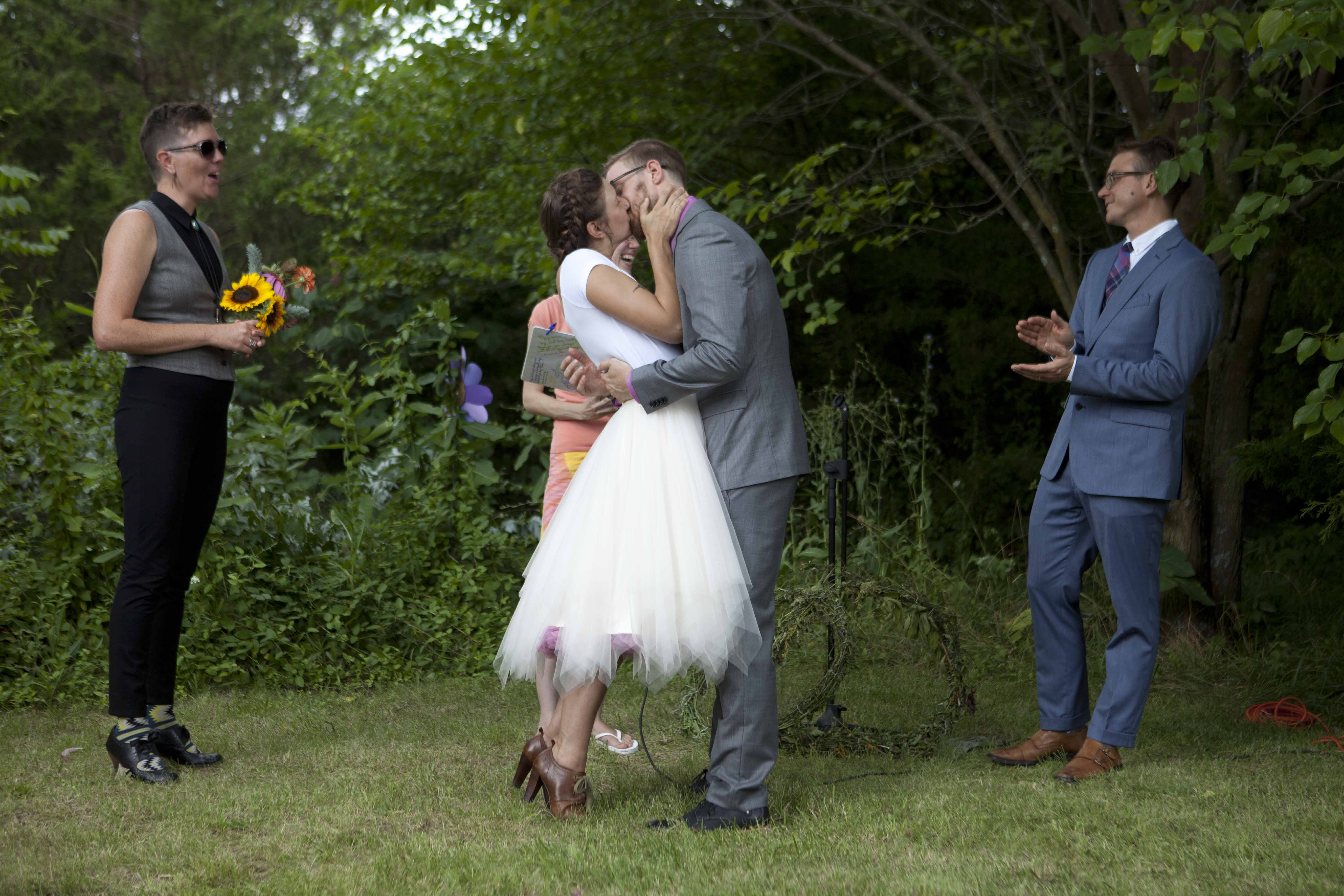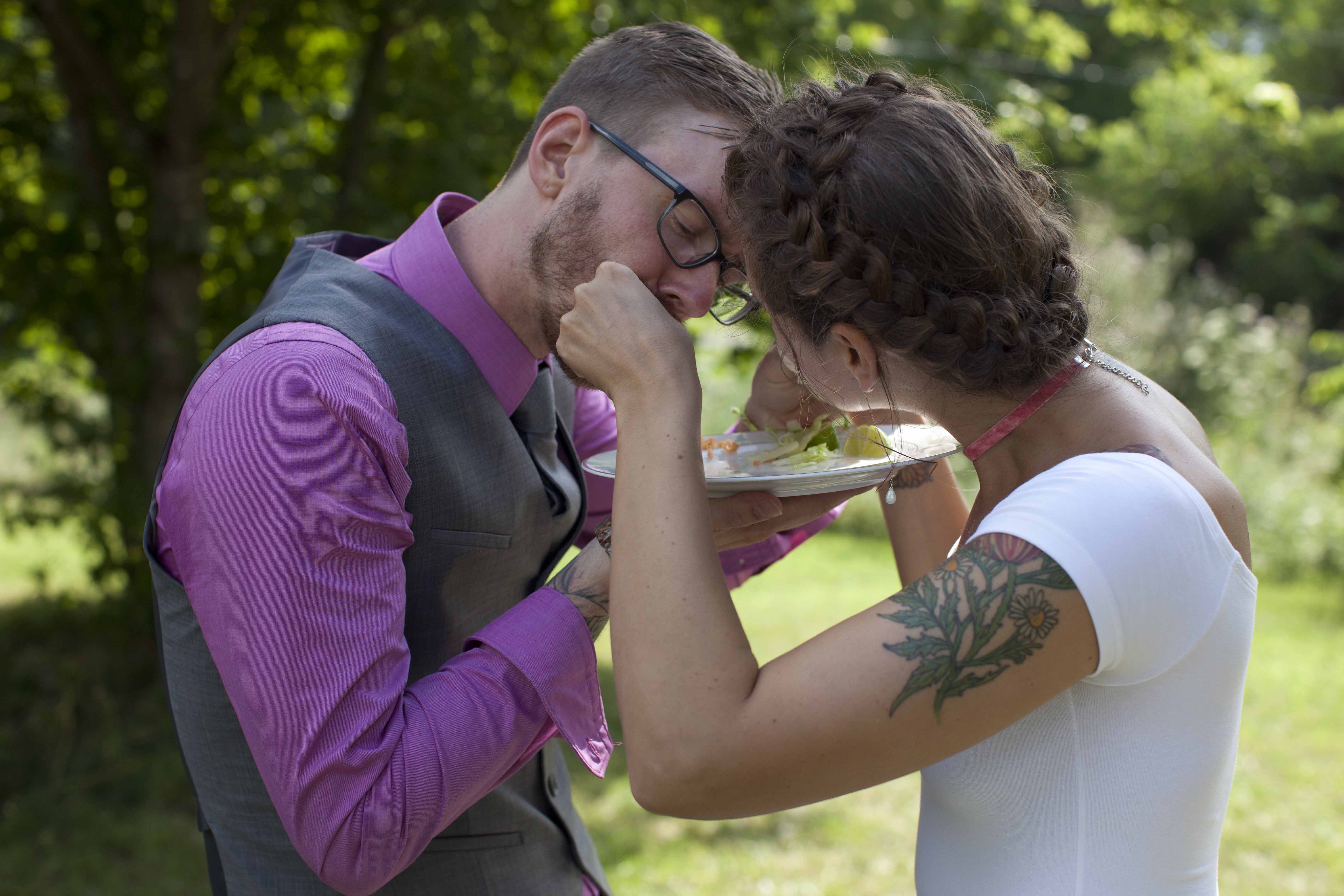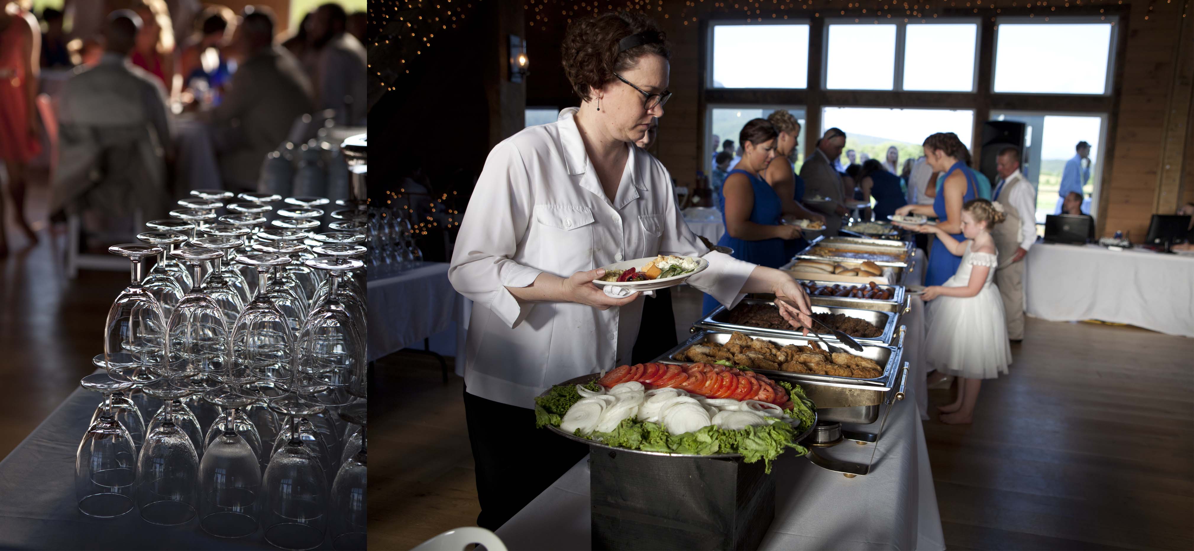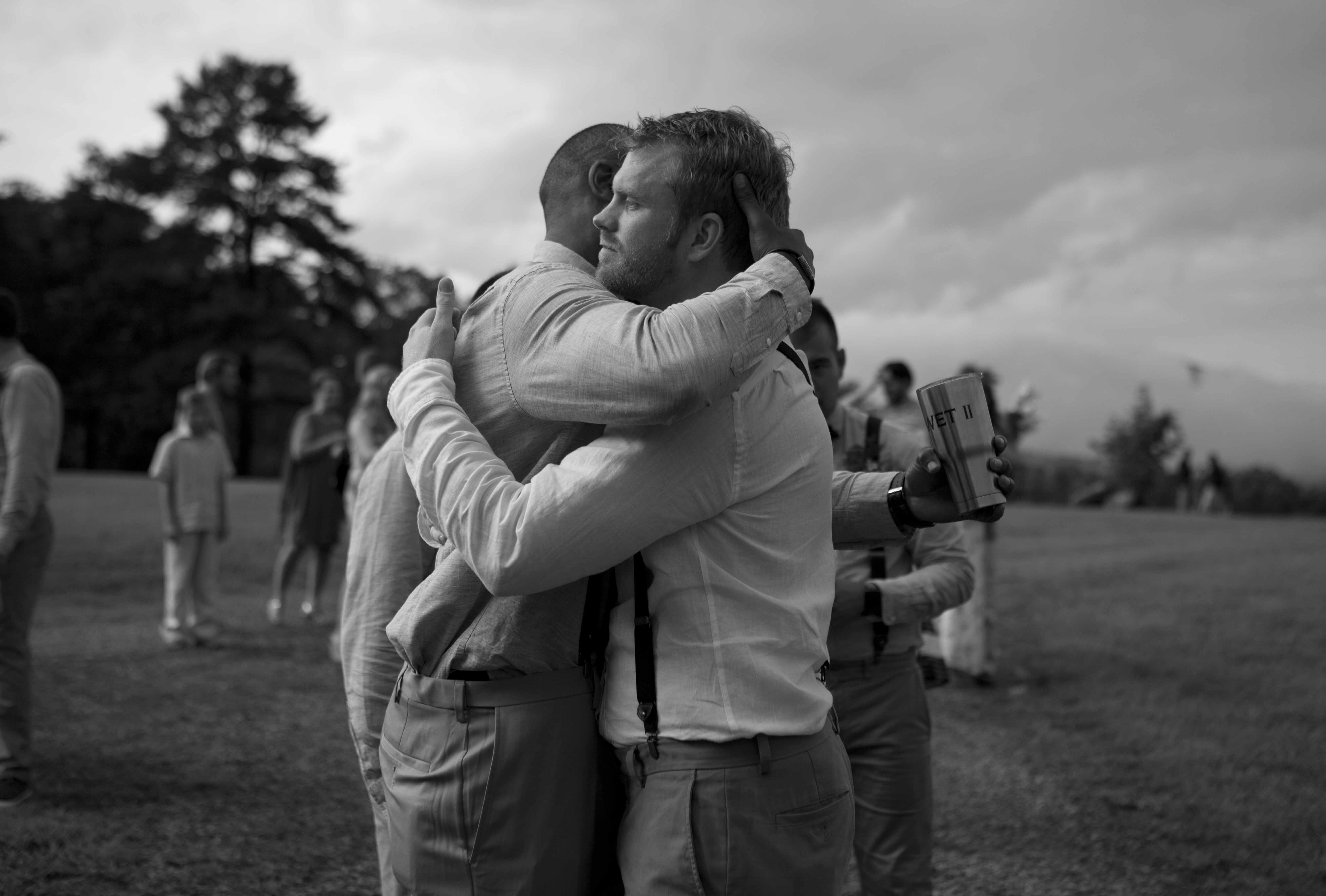 Jason and Allie invited their friends and family to celebrate their wedding day in a nature-lovers heaven. This lush oasis, Montfair Resort Farm, is tucked away in the mountains of Crozet, Virginia, just outside of Charlottesville. There was a calming peace over the whole event that not even a one hour rain delay could rattle. Guests joined together to witness Allie and Jason make sincere, tearful vows to each other while fog hugged the mountainous layers of blue behind them. Following a paper lantern-lit pathway through the woods led guests to cocktail hour where canoes were available for cruising and drinks were served in mason jars designed by Allie’s cousin. The reception was filled to the brim with personal touches of love. As I walked away that evening, sounds of dancing, laughter, music, and celebration under the canopy of trees faded into the distance behind me.
