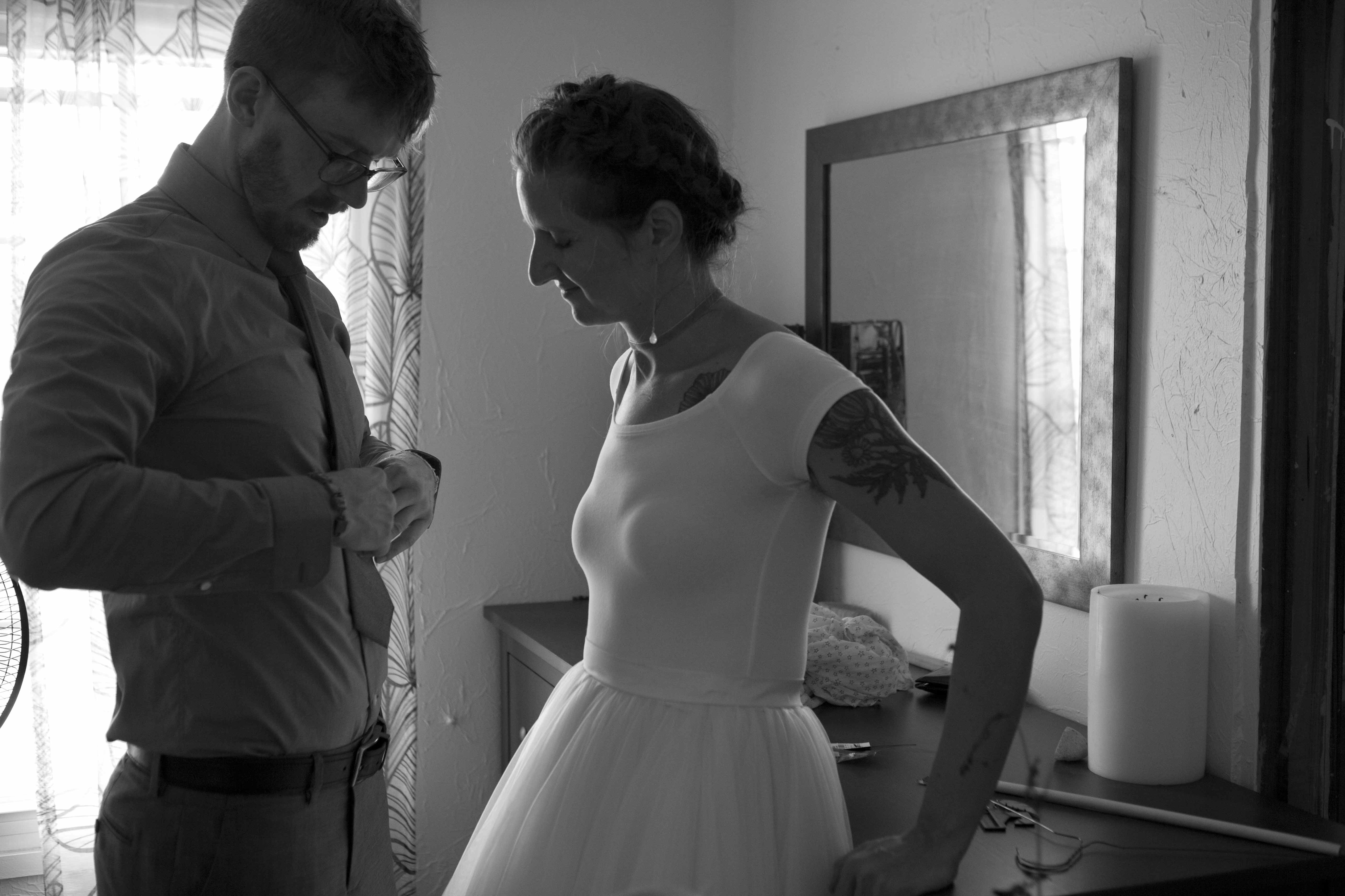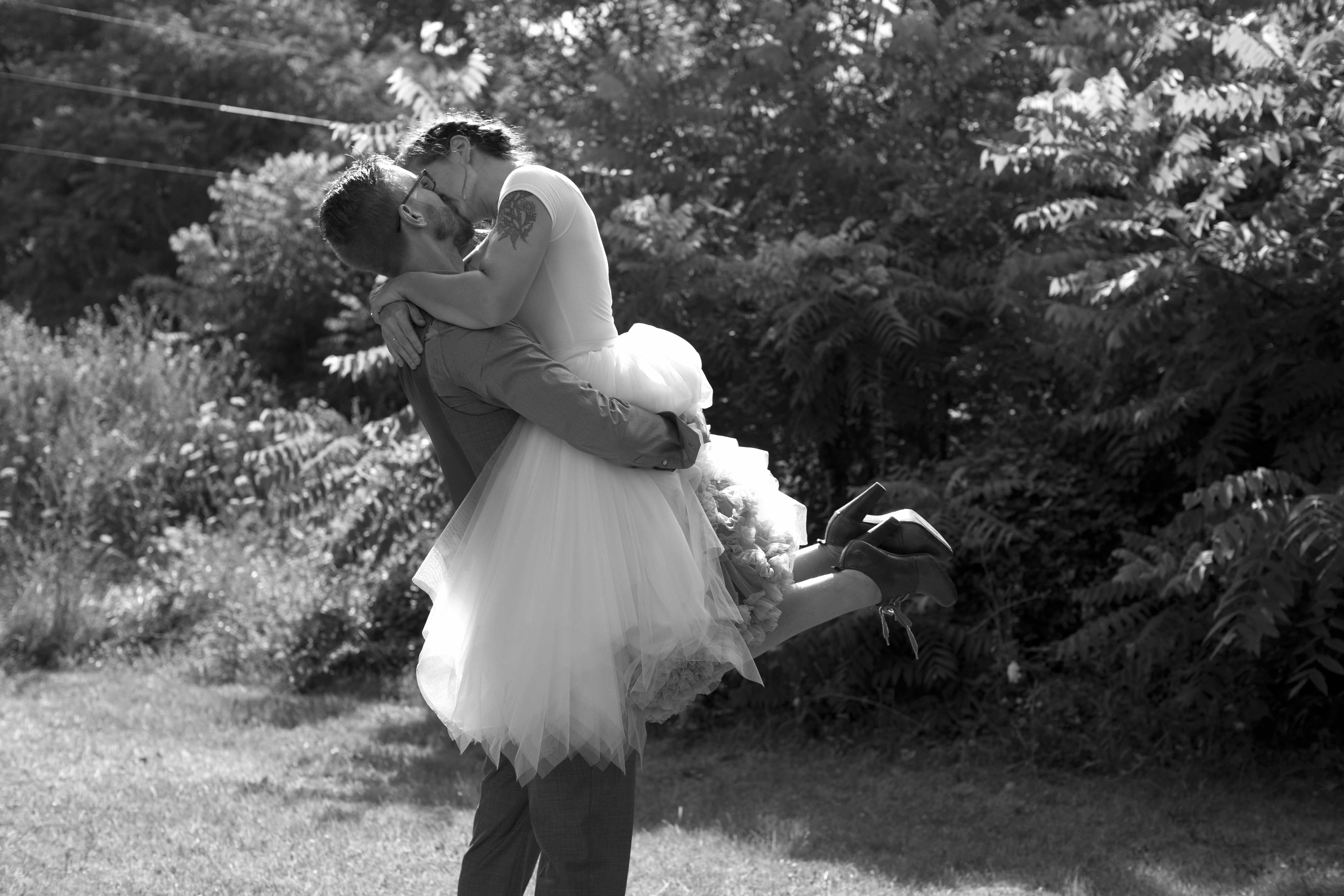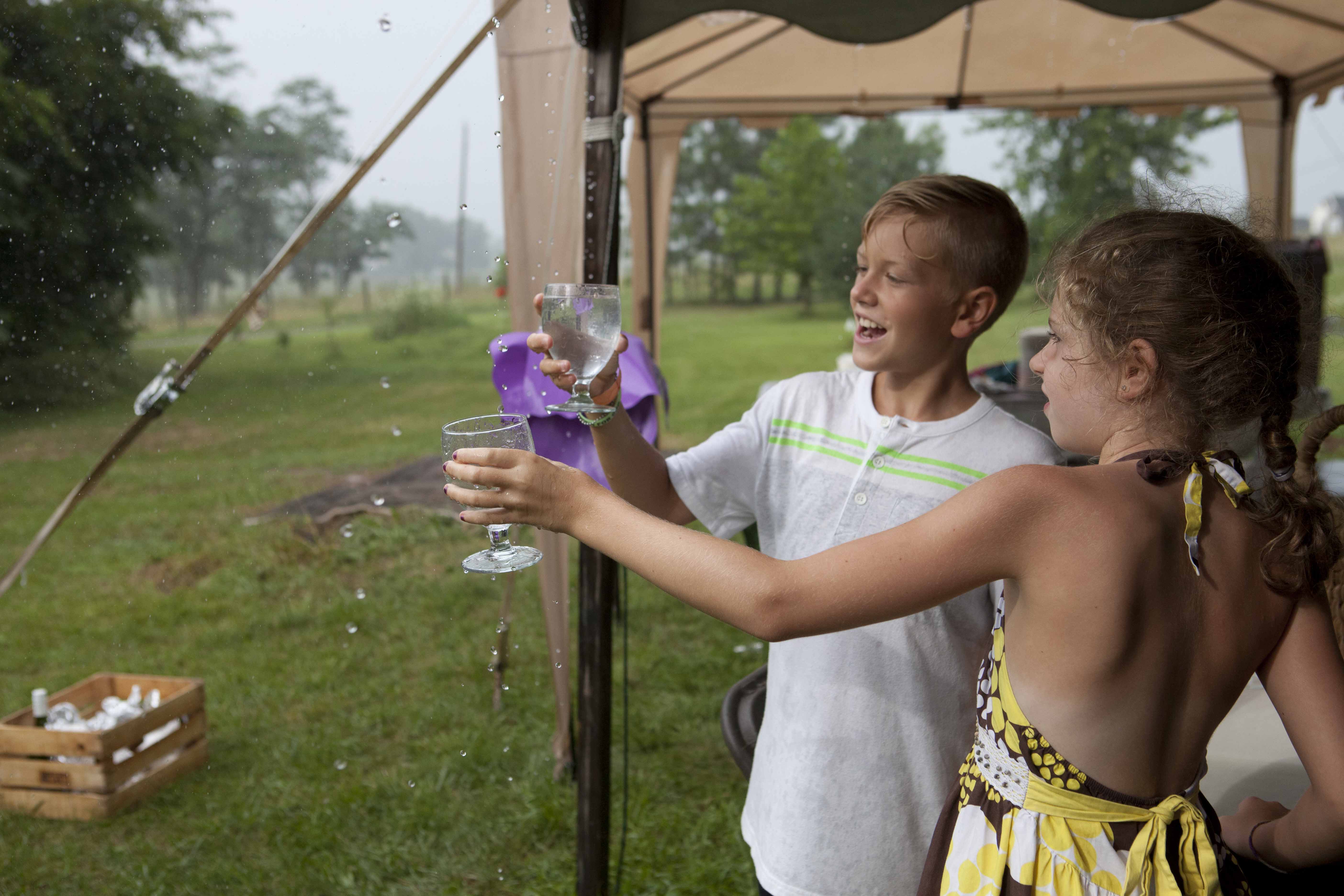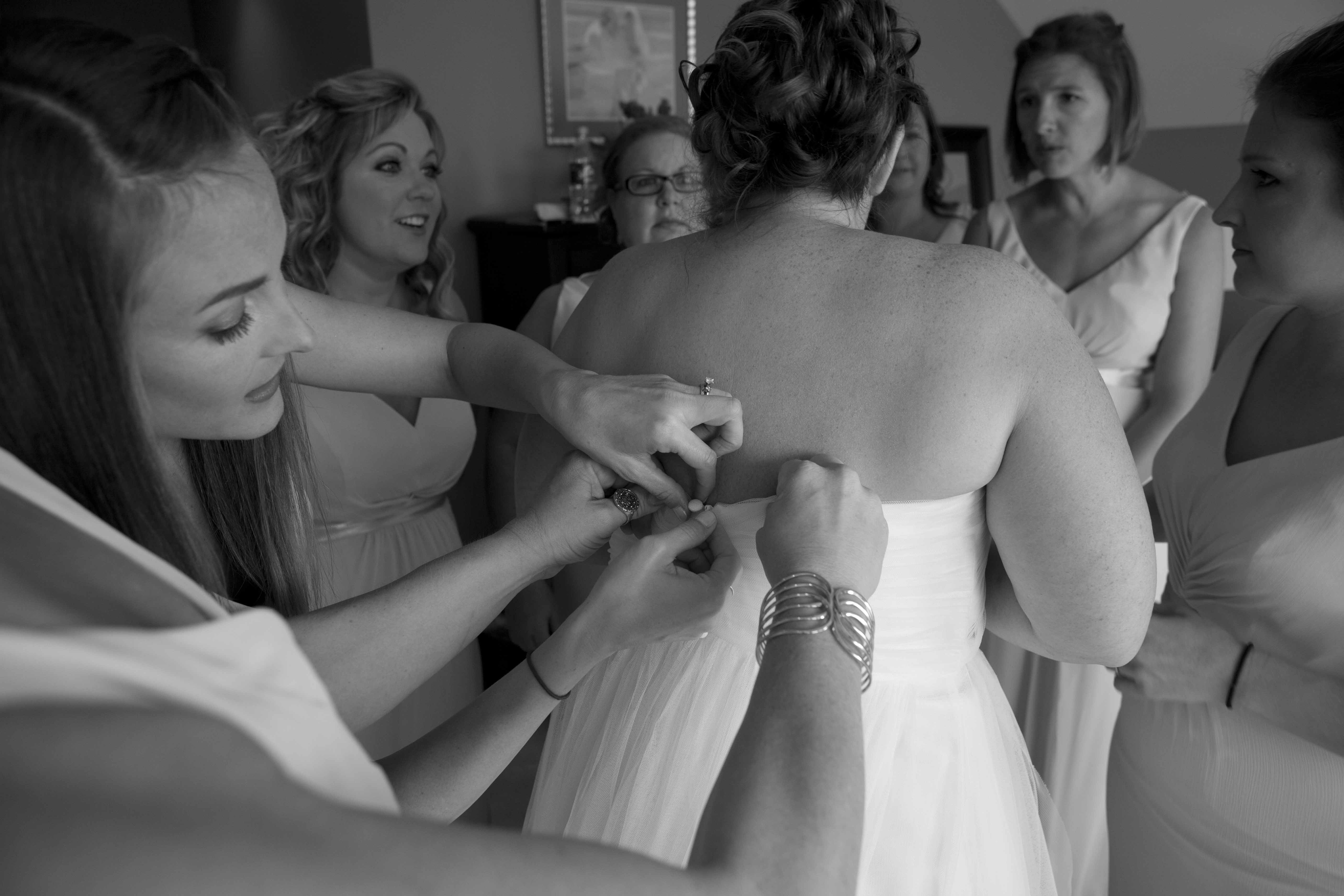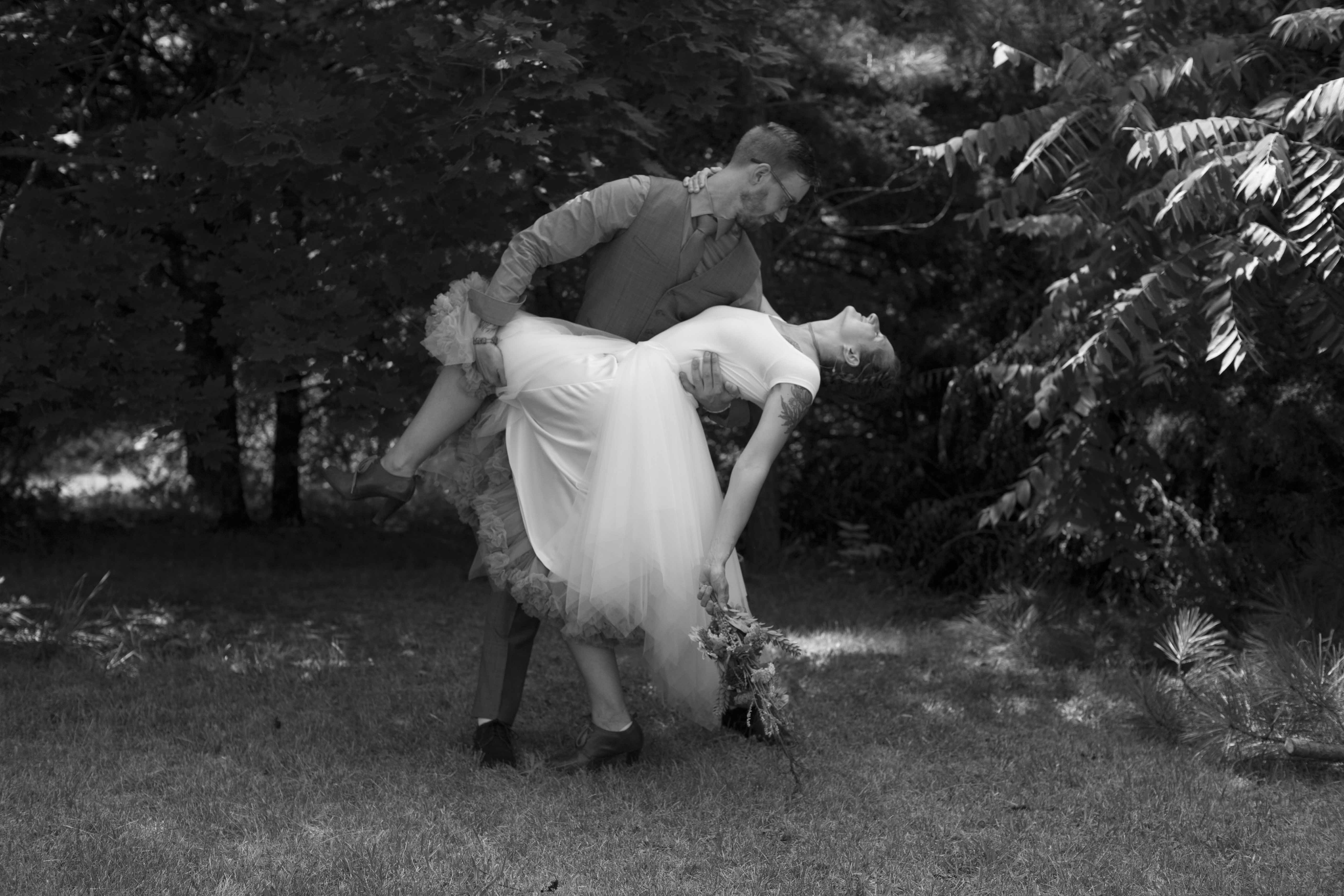 Jason and Allie invited their friends and family to celebrate their wedding day in a nature-lovers heaven. This lush oasis, Montfair Resort Farm, is tucked away in the mountains of Crozet, Virginia, just outside of Charlottesville. There was a calming peace over the whole event that not even a one hour rain delay could rattle. Guests joined together to witness Allie and Jason make sincere, tearful vows to each other while fog hugged the mountainous layers of blue behind them. Following a paper lantern-lit pathway through the woods led guests to cocktail hour where canoes were available for cruising and drinks were served in mason jars designed by Allie’s cousin. The reception was filled to the brim with personal touches of love. As I walked away that evening, sounds of dancing, laughter, music, and celebration under the canopy of trees faded into the distance behind me.