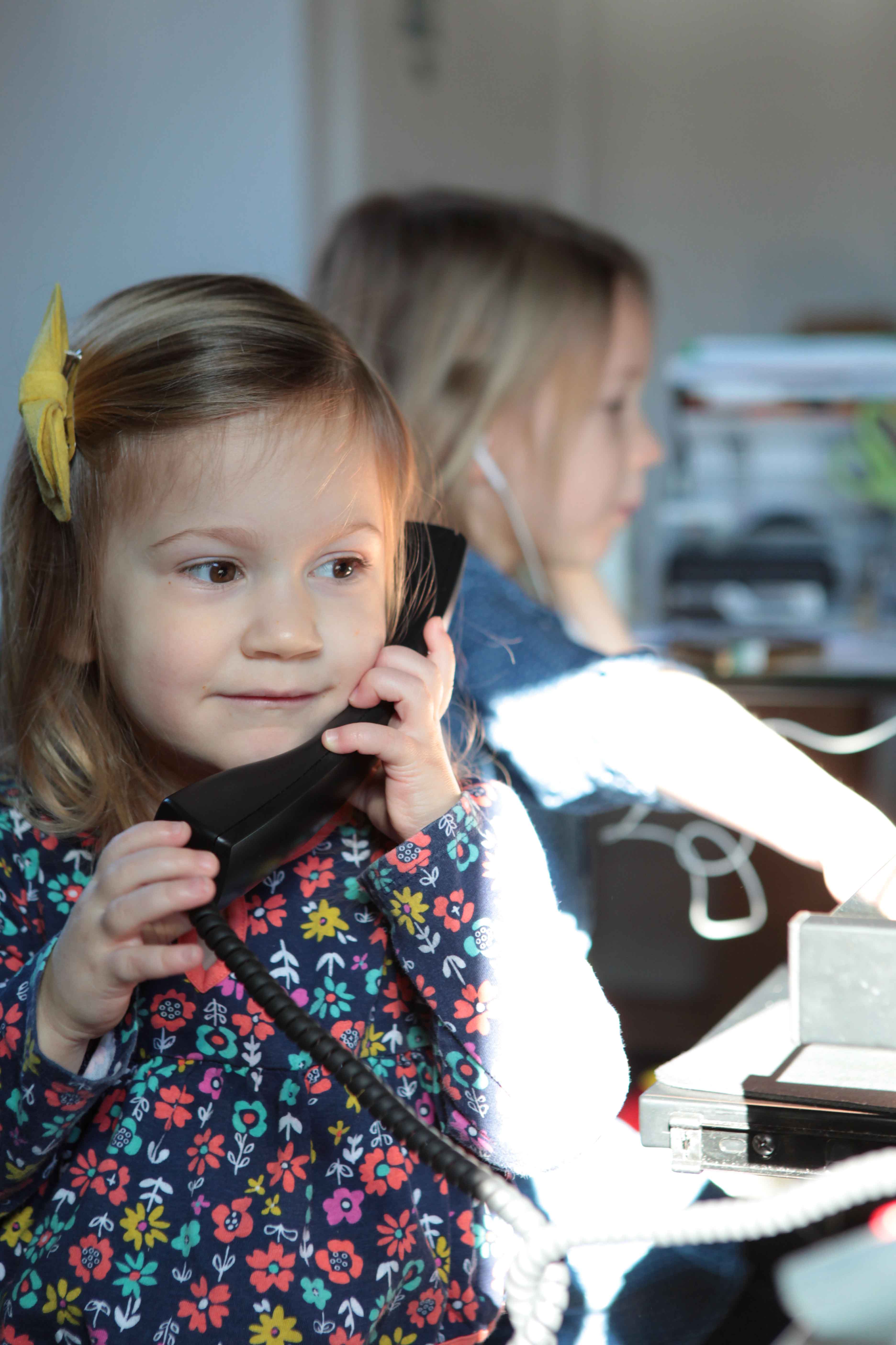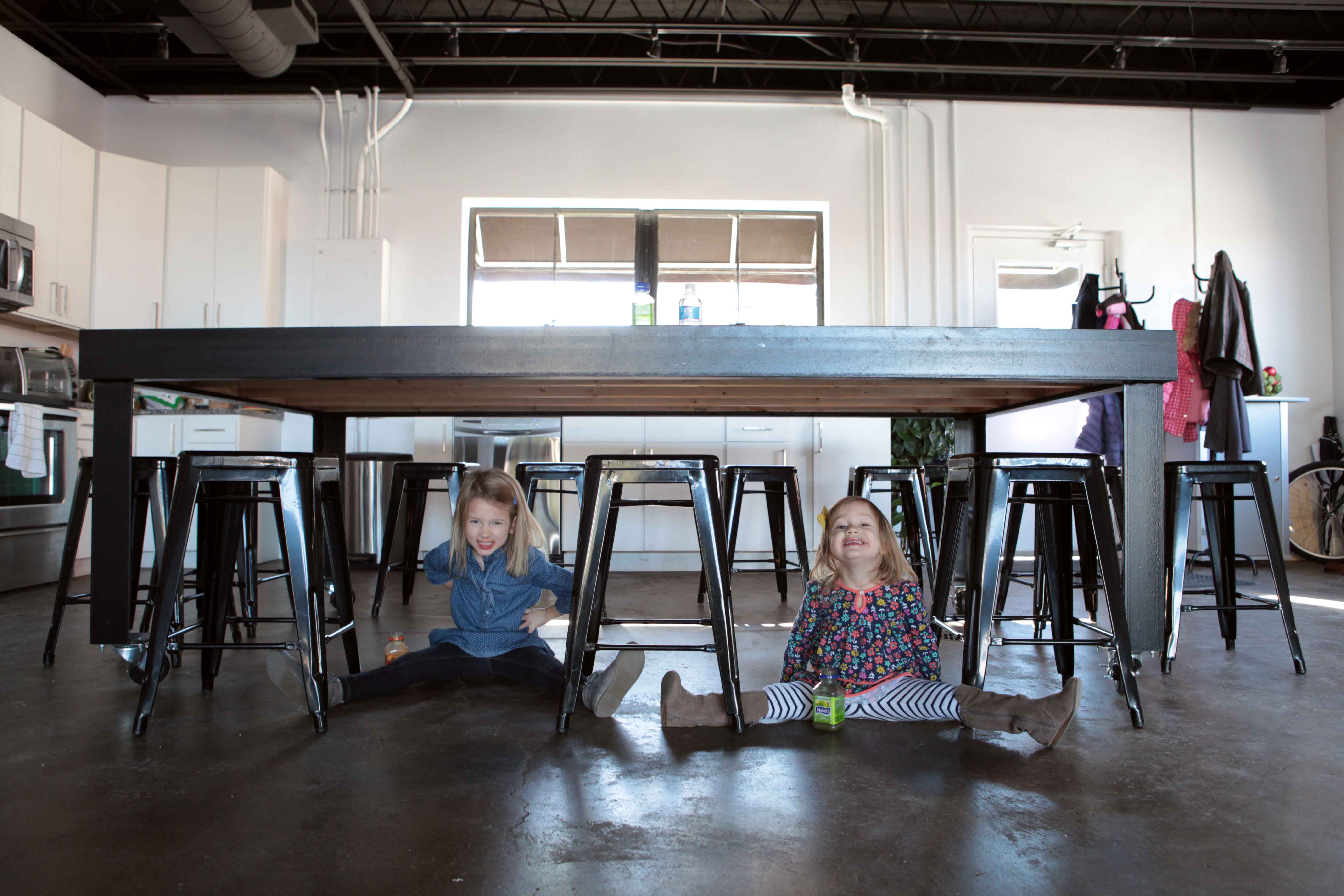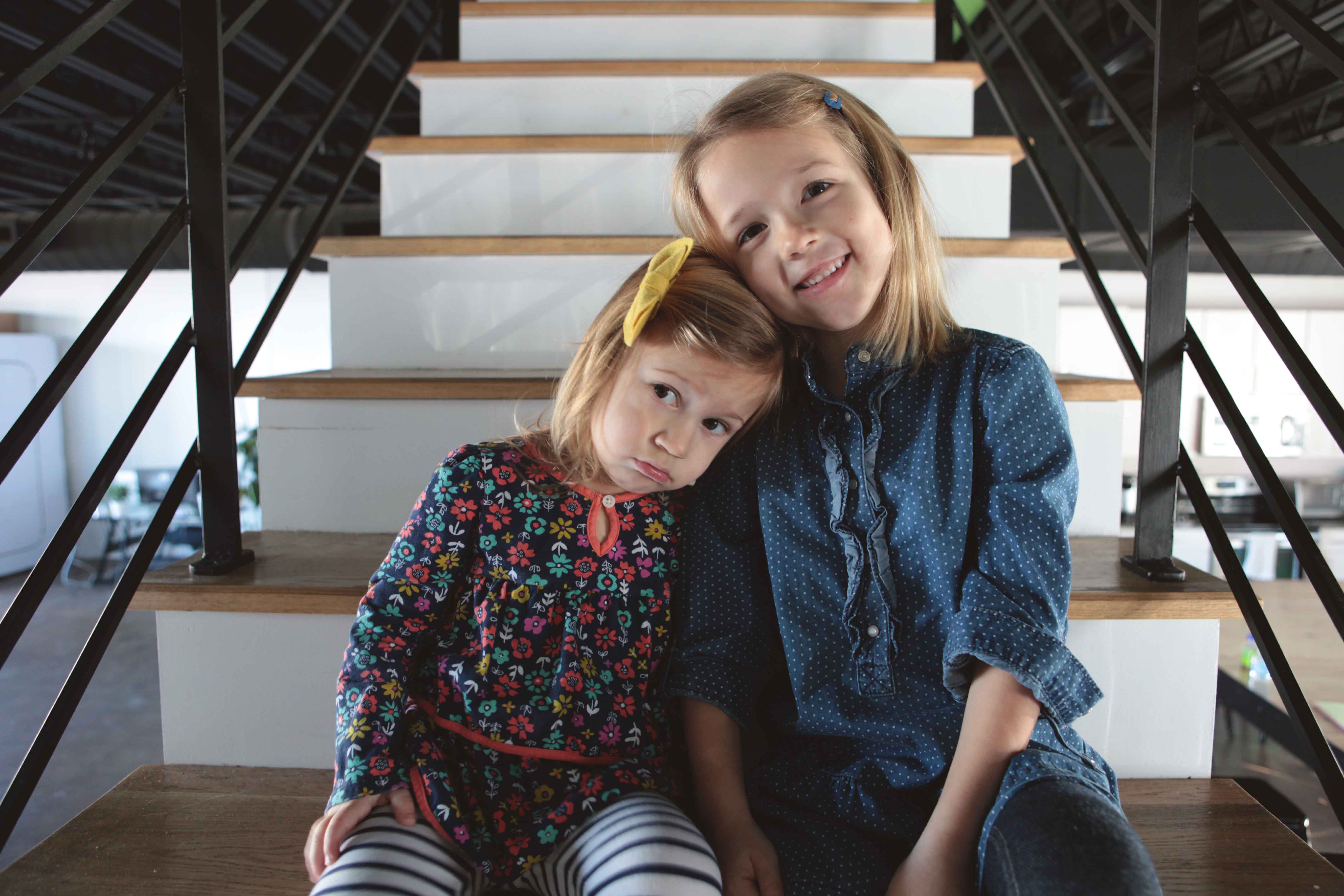 Personality is an understatement. These girls are full of life and entertainment. I met with the Hughes Sisters at MOD Displays in Downtown, Harrisonburg. Why meet at an office? Well this office is owned by the girl’s parents and it offered the perfect space for a mini-session. Lots of light. Lots of space. And perfectly stark to let little personalities bounce from wall to wall. When I arrived they were mid-coloring session but soon enough they were striking poses and showing me their human frog and dinosaur impressions. Oh what fun it is to be a kid! They invited me upstairs to “Daddy’s office” and gave me a crash course on how to run a business. From phone calls to keyboard…stuff to concentration faces to the max. At the end of the session they hopped back up to the table, grabbed their crayons and got back to work.