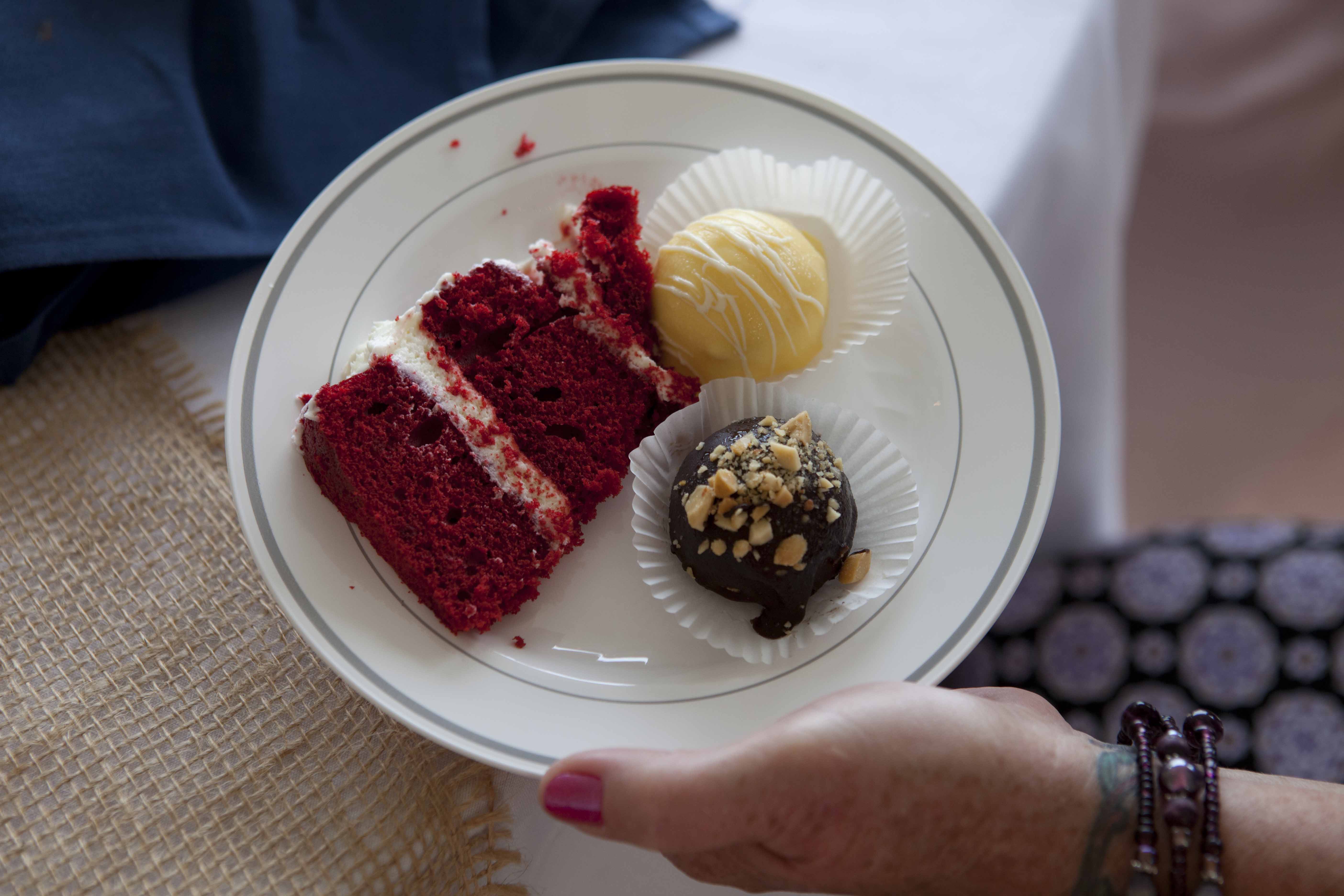 Cupcakes & Cake: The Cupcake Company | Dress: Kathleen Temple, Tailor | Custom knitted shaw: Knitting Savant |Caterer: TASTE. | Florist: Joy Shank Coakley of The Weekend Florist | Venue: Barren Ridge Vineyards