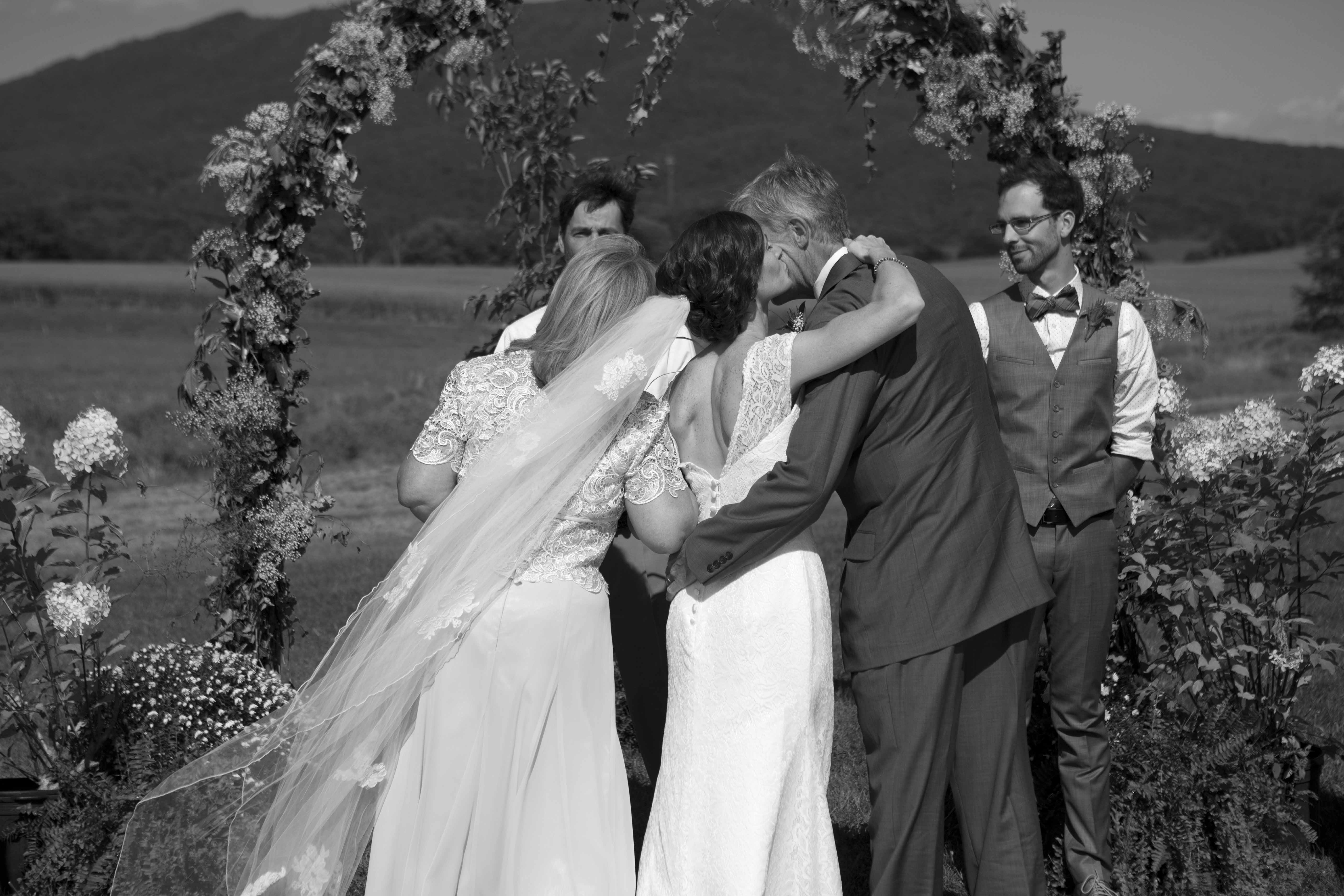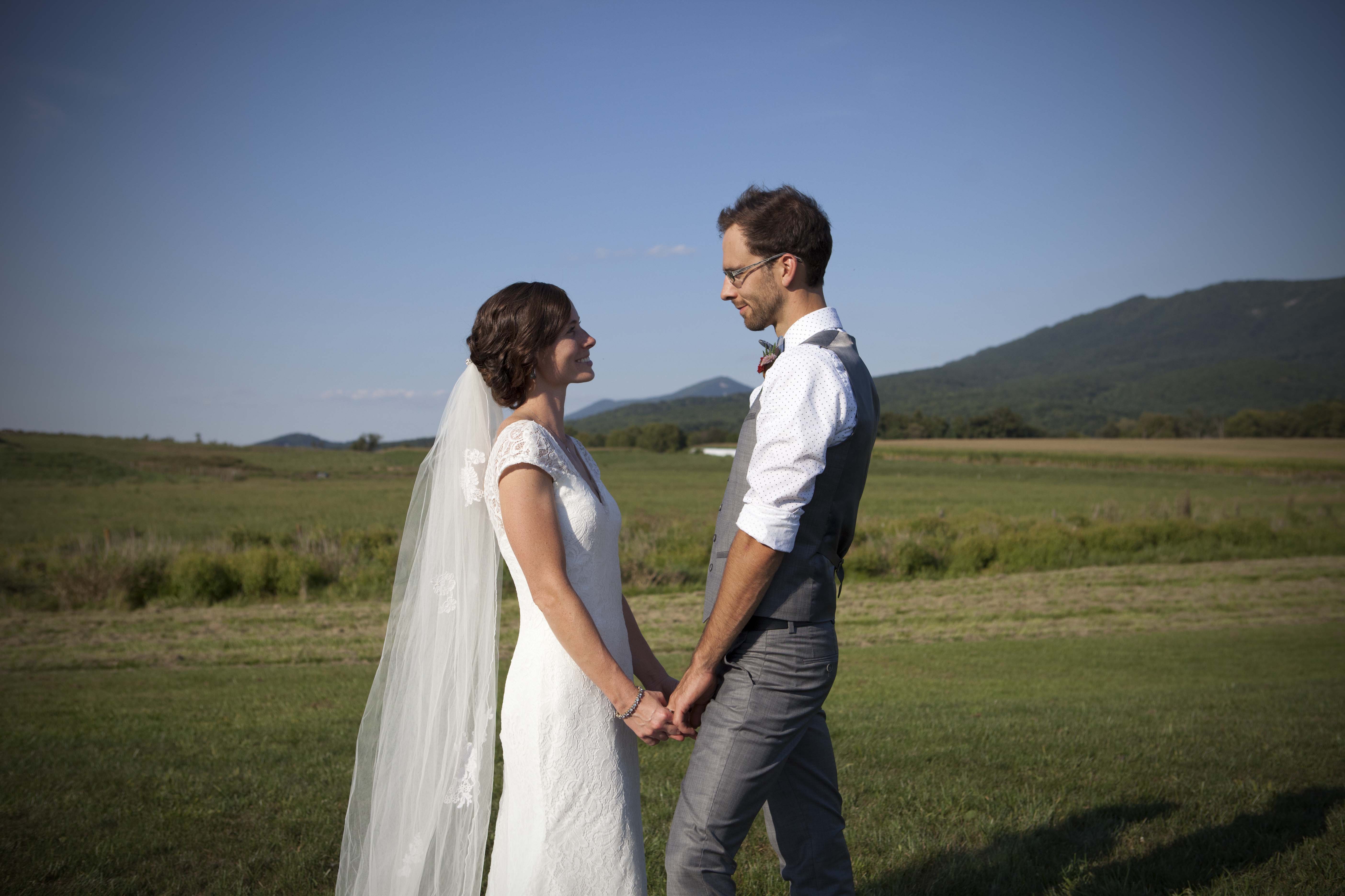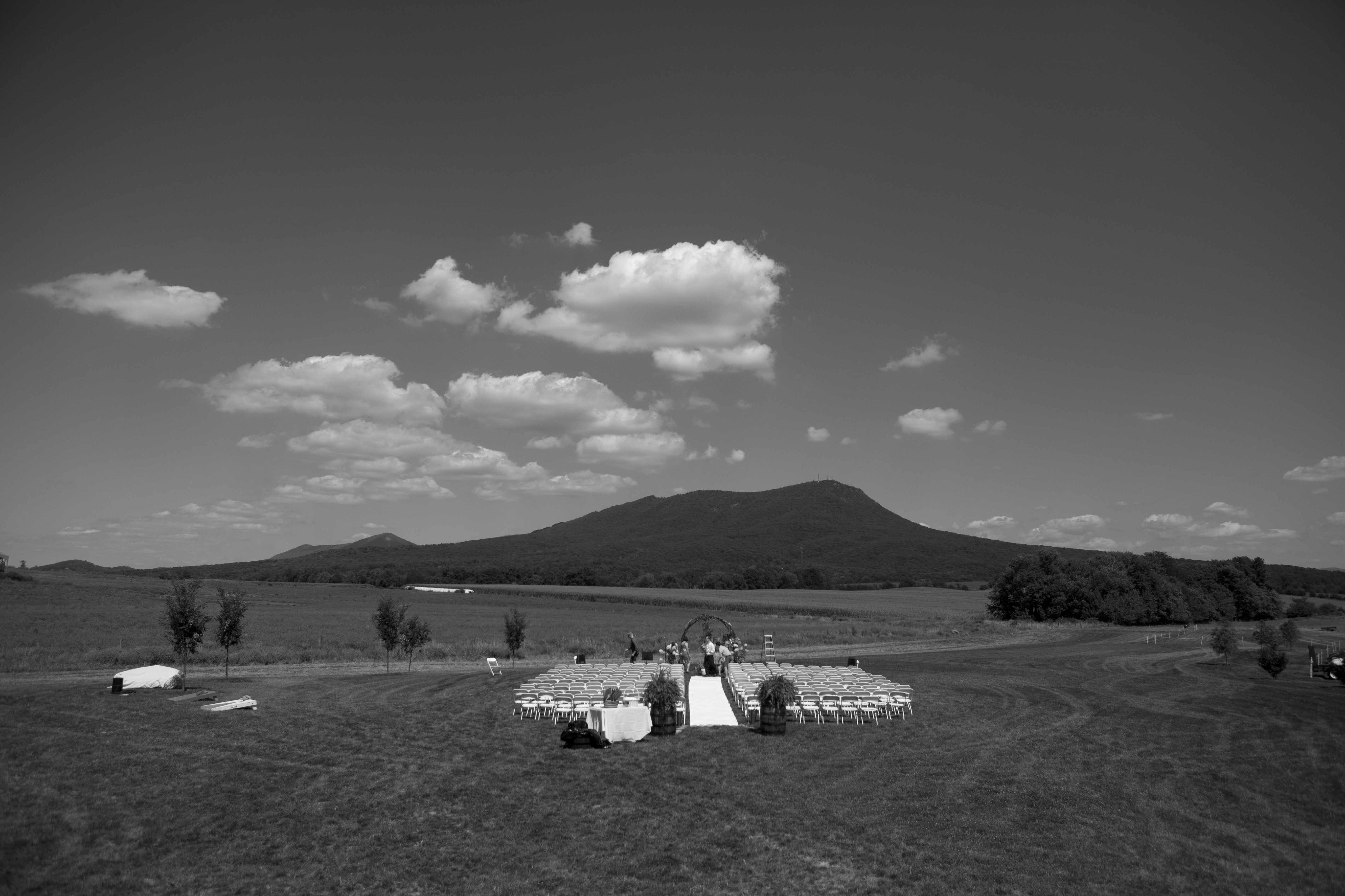 Kyle and Whitney’s wedding took place at Cross Keys Barn on one of the clearest, brightest, bluest days of the summer. Their friends and family gathered for pre-ceremony yard games, cocktails and mingling – a good ol’ fashioned backyard-style get-together that is trademark of Harrisonburg. And as if the crisp blue skies weren’t a perfect enough backdrop, Massanutten Mountain and Fridley’s Gap (where Kyle proposed) perched perfectly in the near distance. The ingredients of a postcard. The day carried on as the roar of chatting and laughter among friends grew. There was a happy buzz all around the grounds, in the barn, on the deck, in the front and the back and in every nook and cranny. When I left that evening, I could hear the laughter and feet stomping to the beat of DJ Ryan Clark. I could smell firewood burning as people sat and mingled under the stars. I could see glow-in-the-dark frisbees zooming by the distant mountain peaks. And…I could feel the love. Congratulations on a perfect wedding day, Kyle & Whitney.