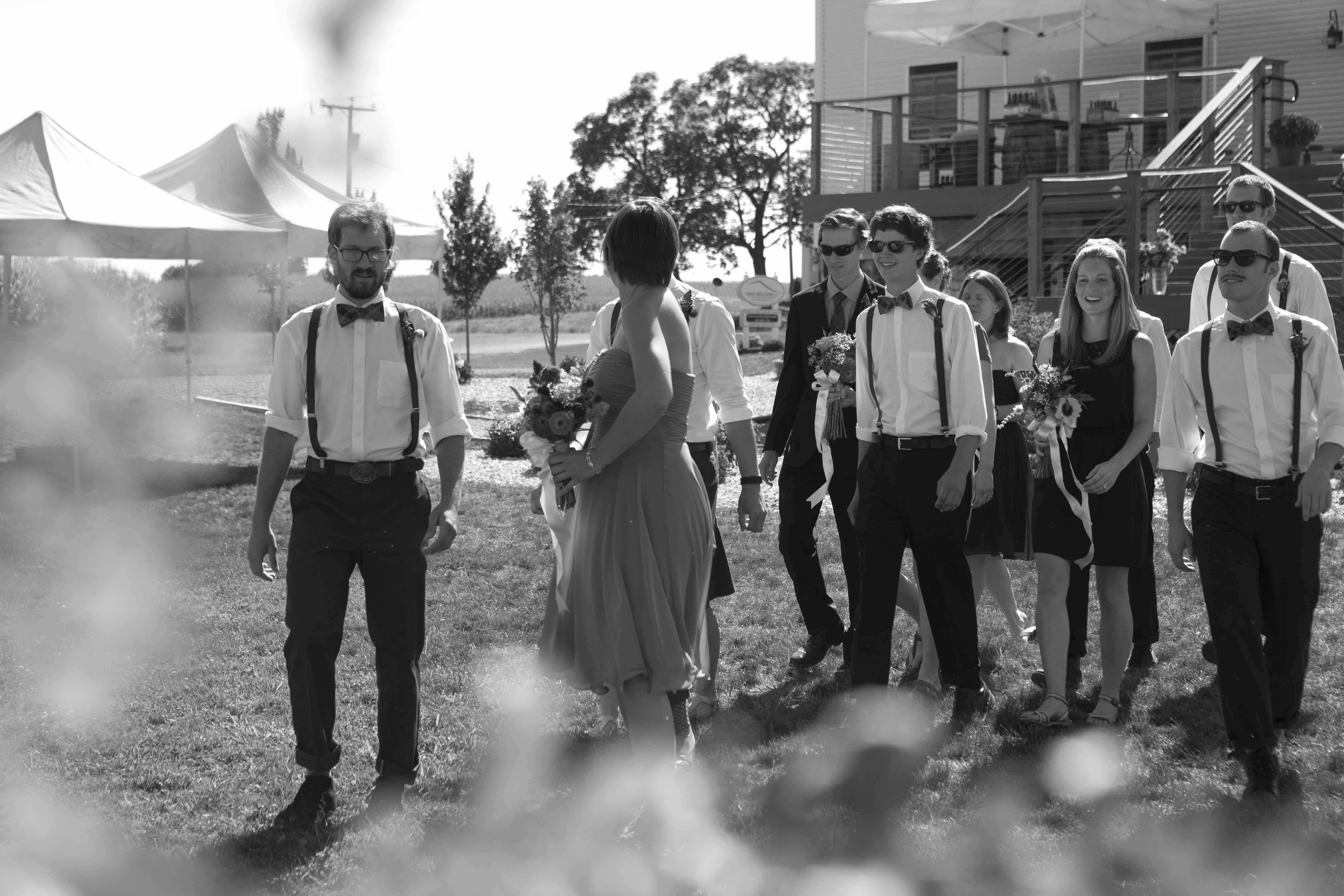 I arrived at Barren Ridge Vineyards a few moments before the bride and groom. And I’m glad I did. Otherwise, I would have missed the arrival of the soon-to-be-wed couple who casually strolled in the back door, wedding dress in hand, wind blown hair and beaming, relaxed contentment settled into their eyes. At first sight of their freshly decorated tables they both became vocally excited and thrilled that it was here. Their wedding day was finally here. They rushed to different rooms to change and in a few short moments they were embracing and celebrating once again. The wind carried the time away as we wandered around the hills and vines of the vineyards with a Dalmatian in tow. Their family joined and later their friends and before we knew it the sun left the sky and guests enjoyed an epic first dance, a wonderful gourmet meal, smooth wine, toasts, stories, and lots of dancing. Congrats and cheers to you both, Amy and Kelly!